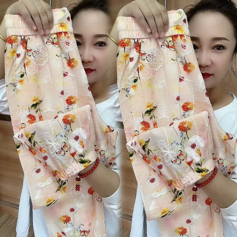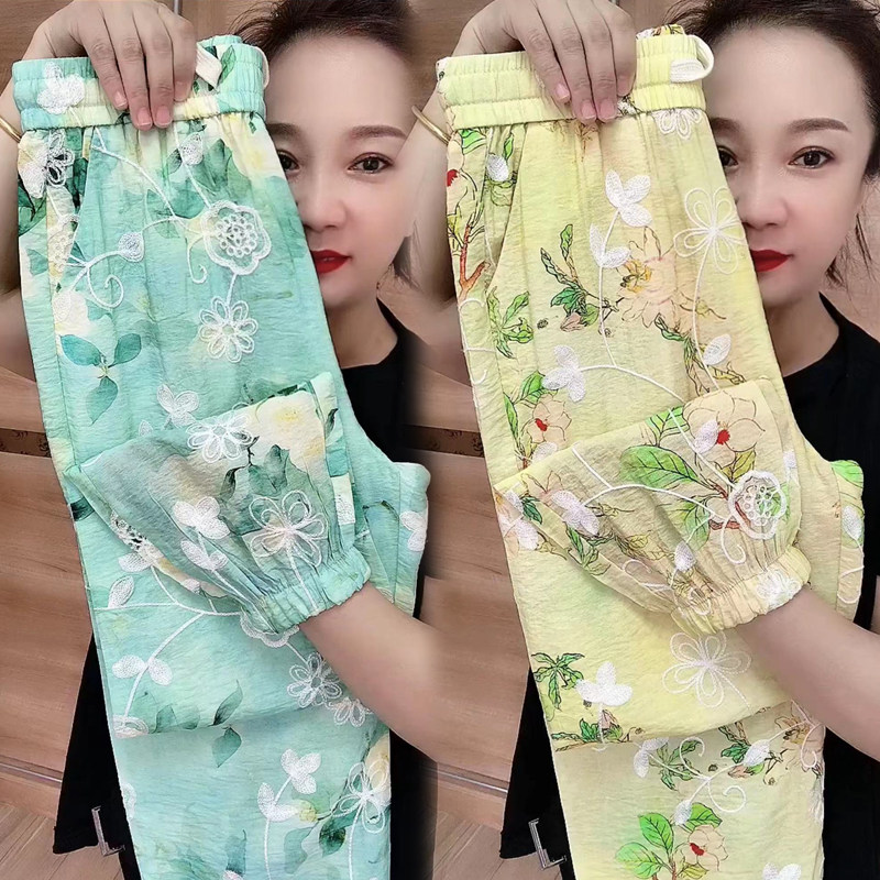 夏季新款休闲裤女薄款萱麻花裤九分哈伦裤时尚提花女裤百搭空调裤