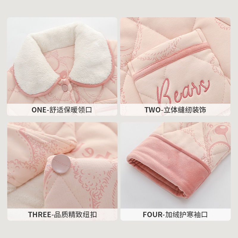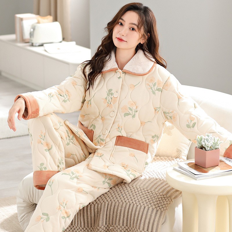 三层夹棉睡衣女秋冬季加绒加厚珊瑚绒2025新款碎花女士家居服