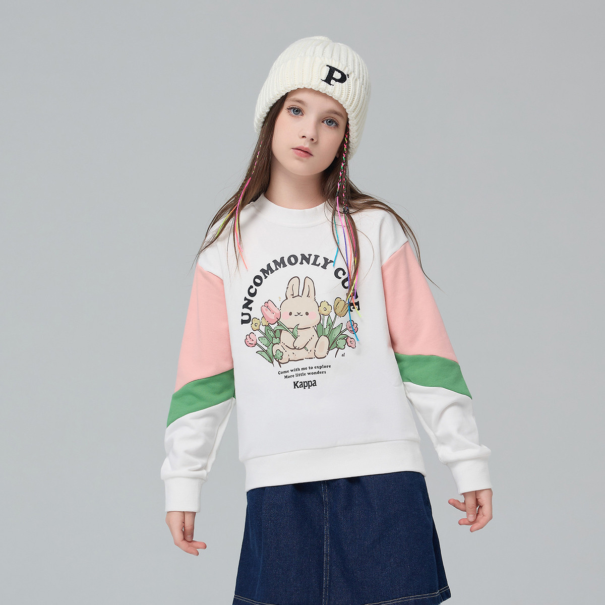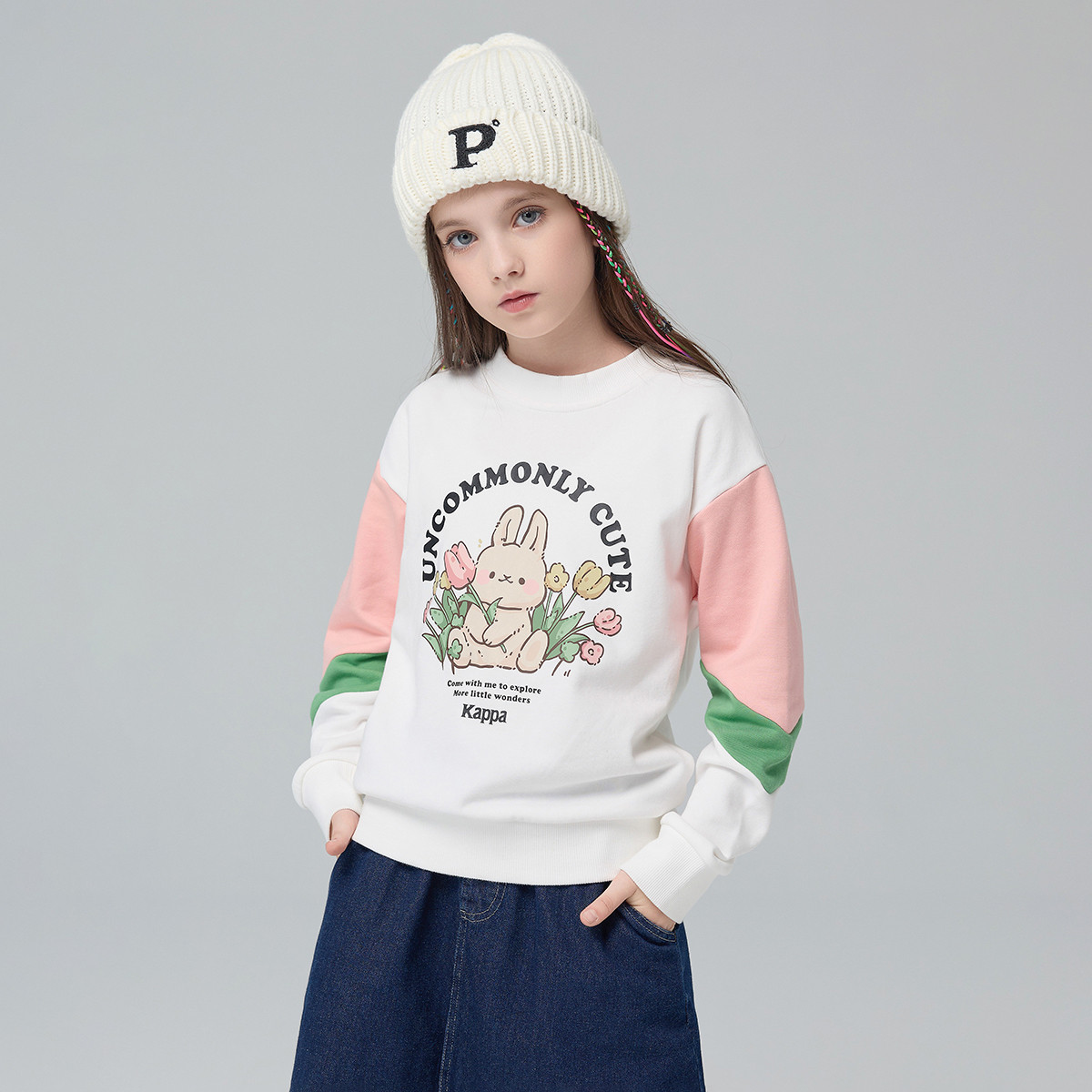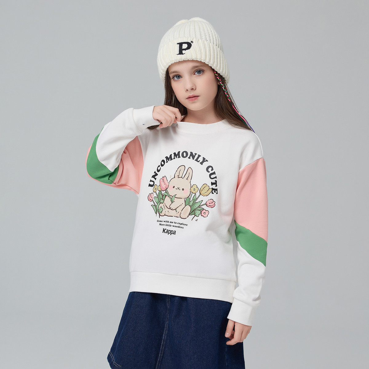 【清仓】kappa女童卫衣春秋2025新款中大童圆领百搭上衣儿童打底