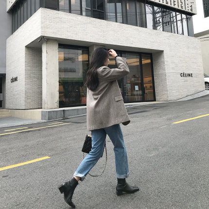宽松复古羊毛呢中长款西装外套