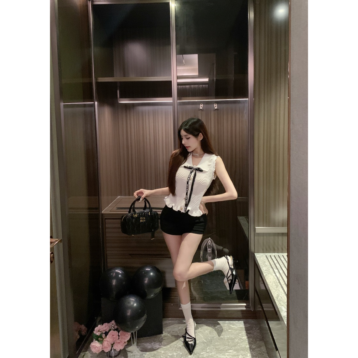 辣妹小香风无袖翻领针织马甲背心女2025夏气质修身百搭短款上衣