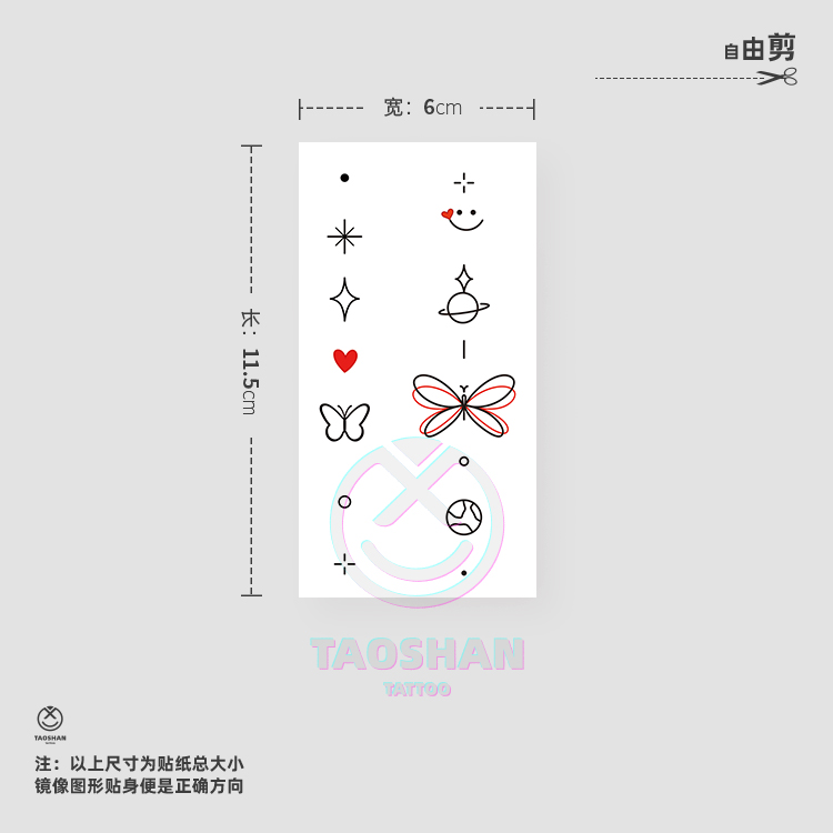 桃山TATTOO竖排蝴蝶简约迷你女生爱心微笑ins个性防水防水纹身贴