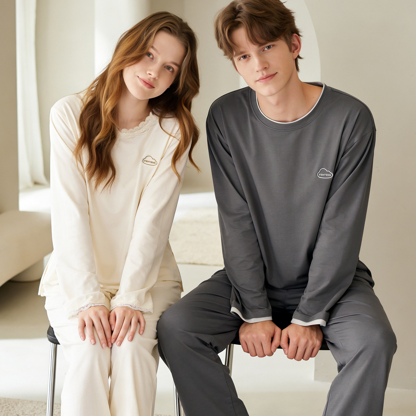 【k姐推荐】芬腾春季纯棉长袖睡衣情侣男女士家居服套装