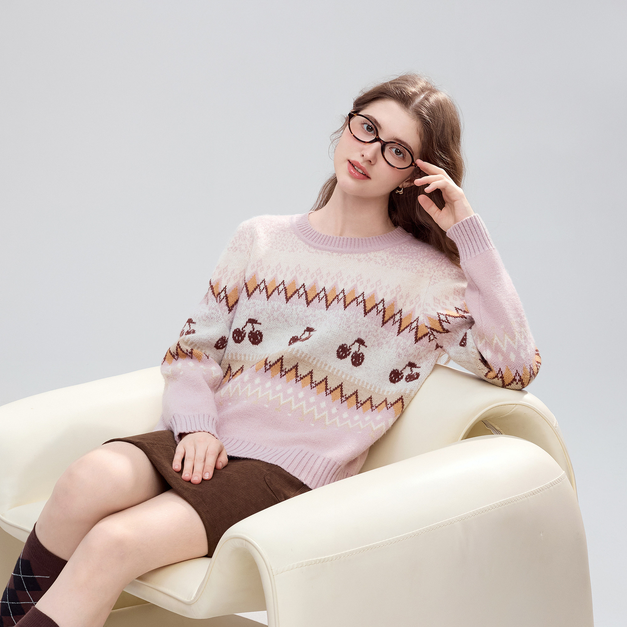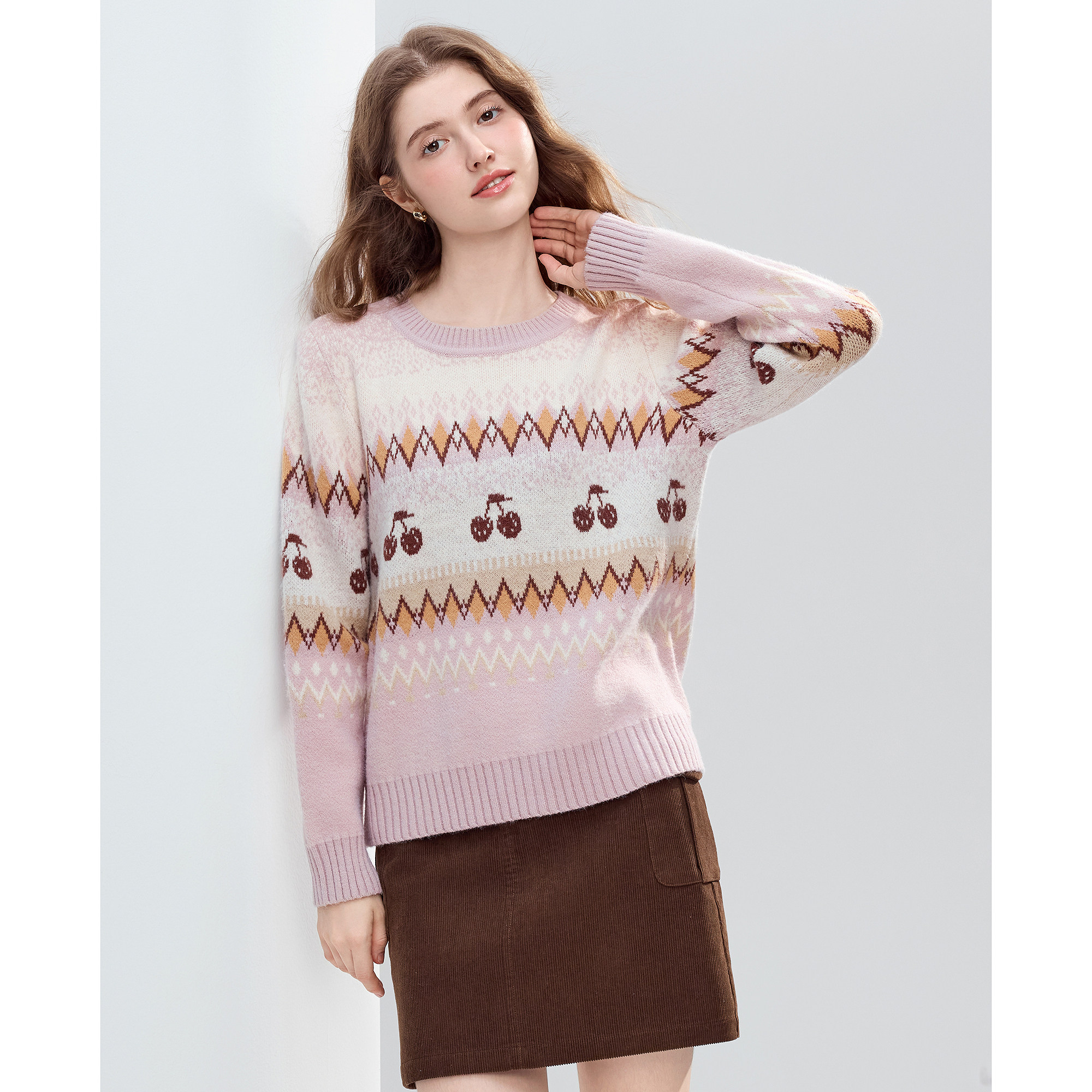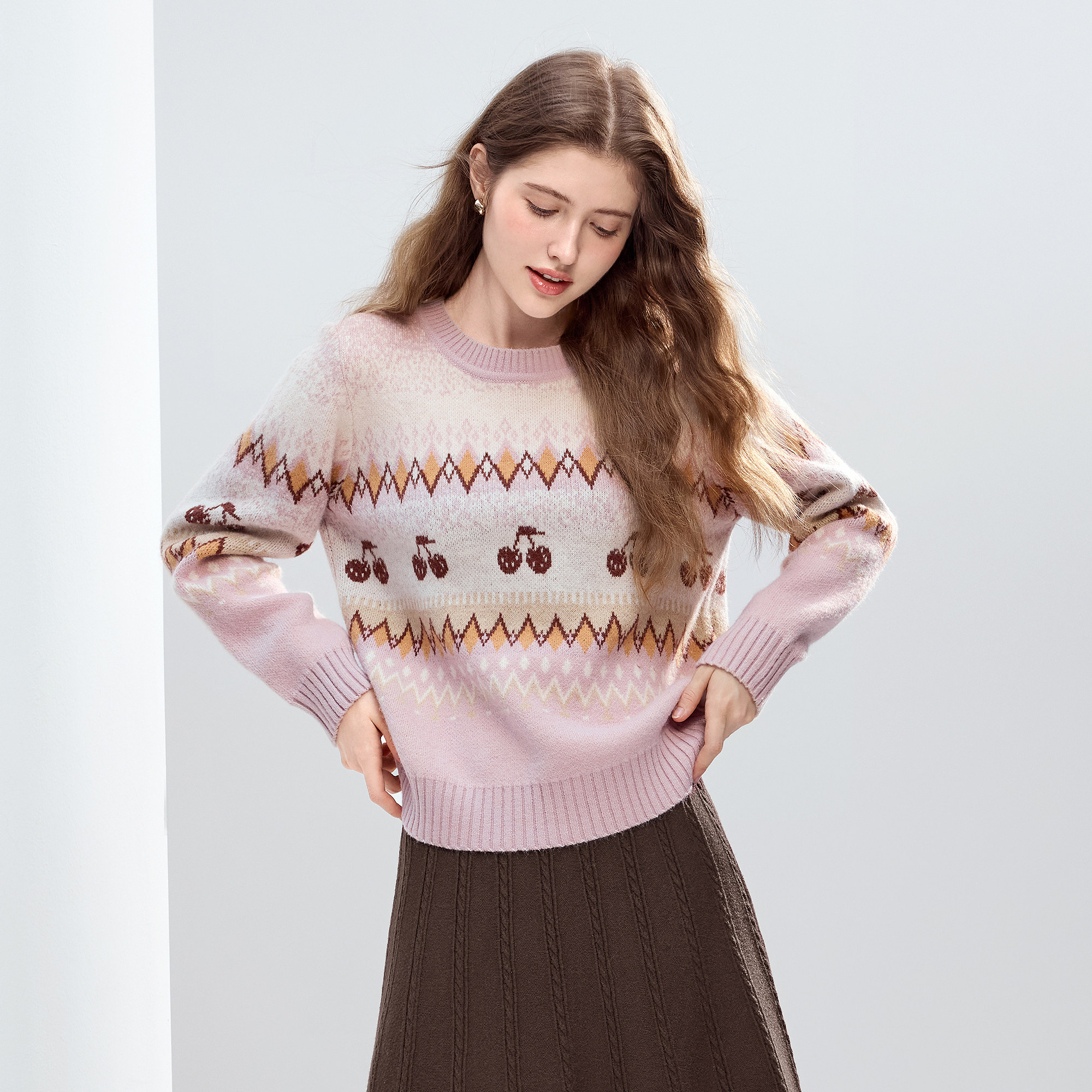 betu百图复古费尔岛提花圆领毛衣女套头2025年冬季新款减龄毛衫