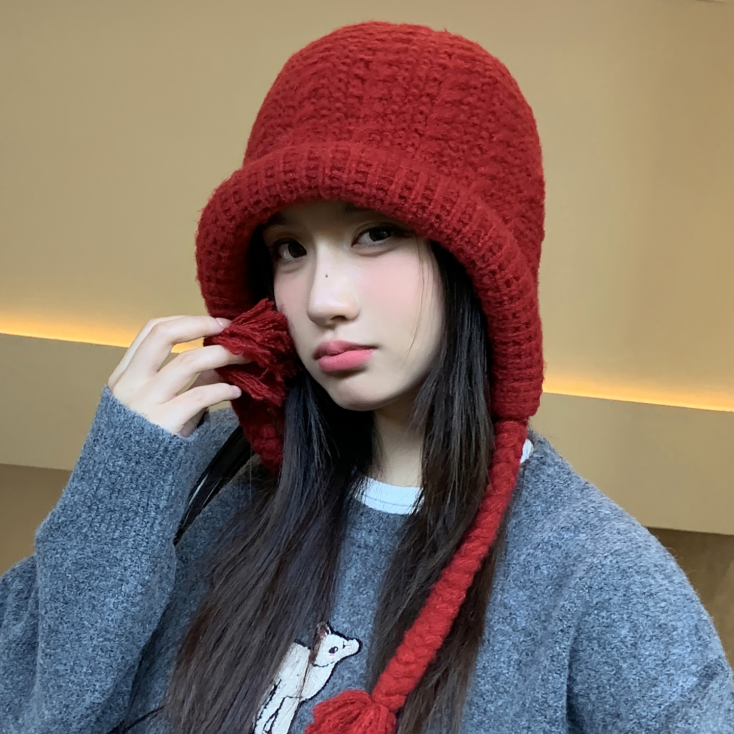 韩系大头围针织毛线帽子女2025秋冬季新款显脸小防寒保暖套头帽潮