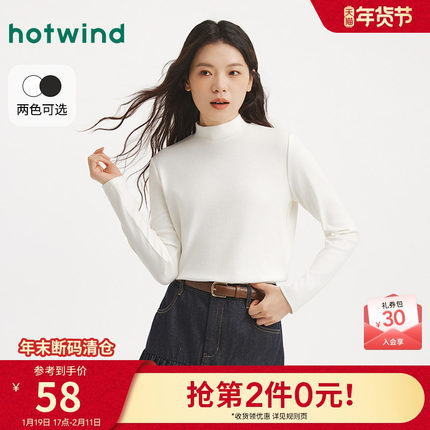 热风女士半高领打底衫2025年秋季新款基础款修身内搭打底上衣T恤