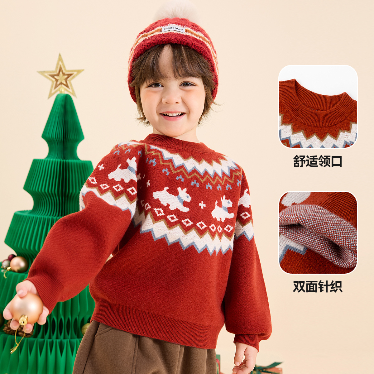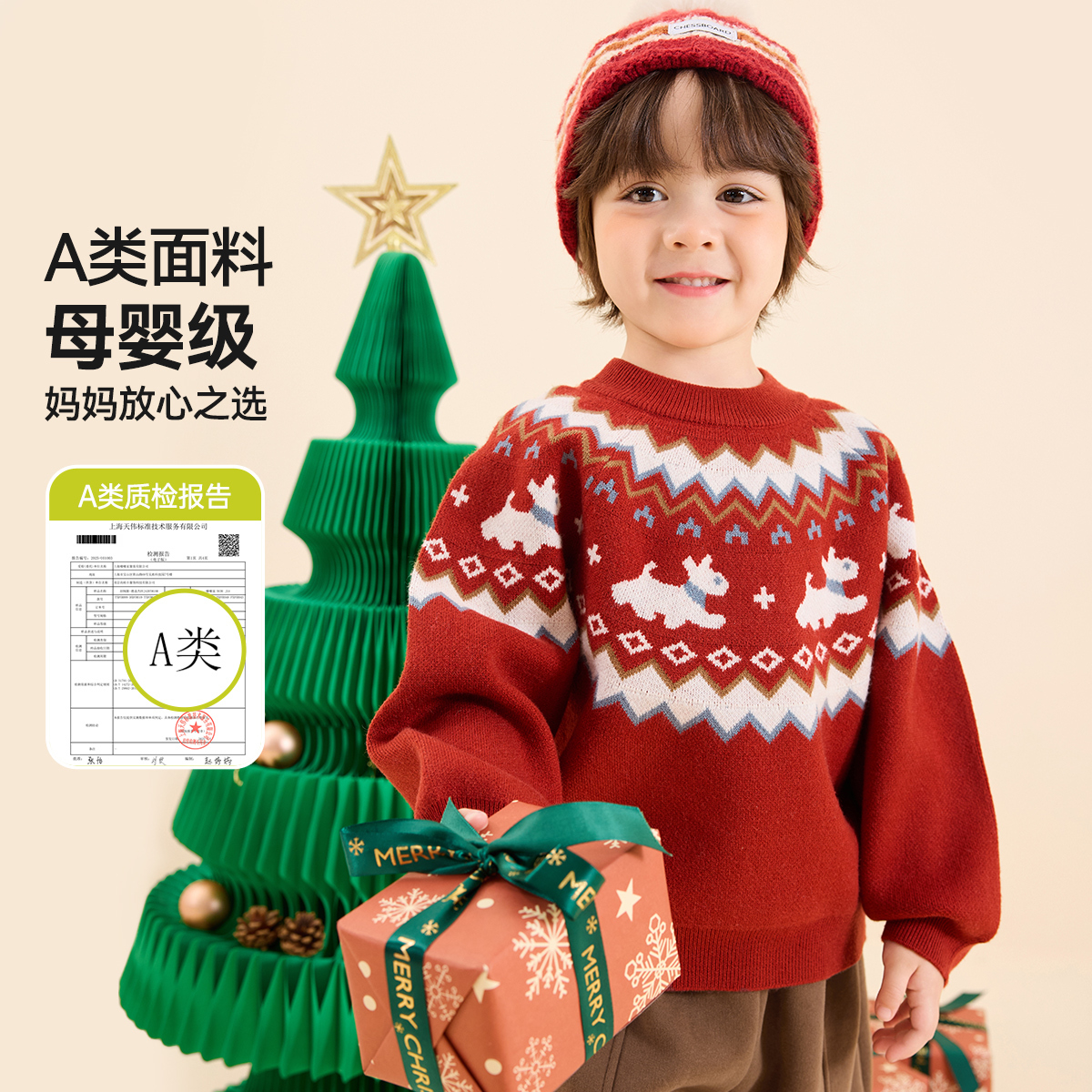 嘟嘟家男童圣诞毛衣冬款儿童针织衫洋气女童上衣新款宝宝衣服冬季