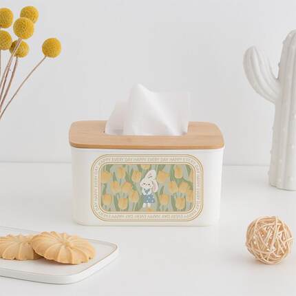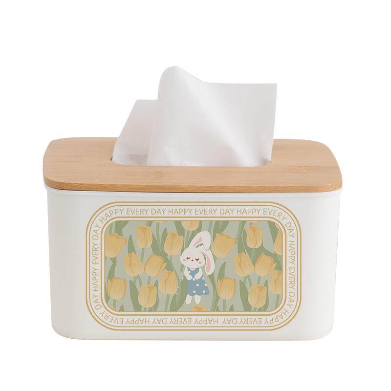 优雅小兔 竹木抽取式卫生纸 纸巾盒家用客厅饭厅茶几桌面餐巾纸收