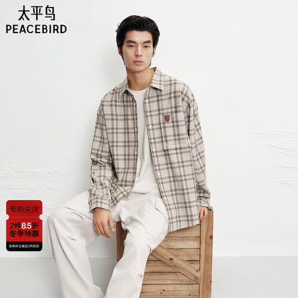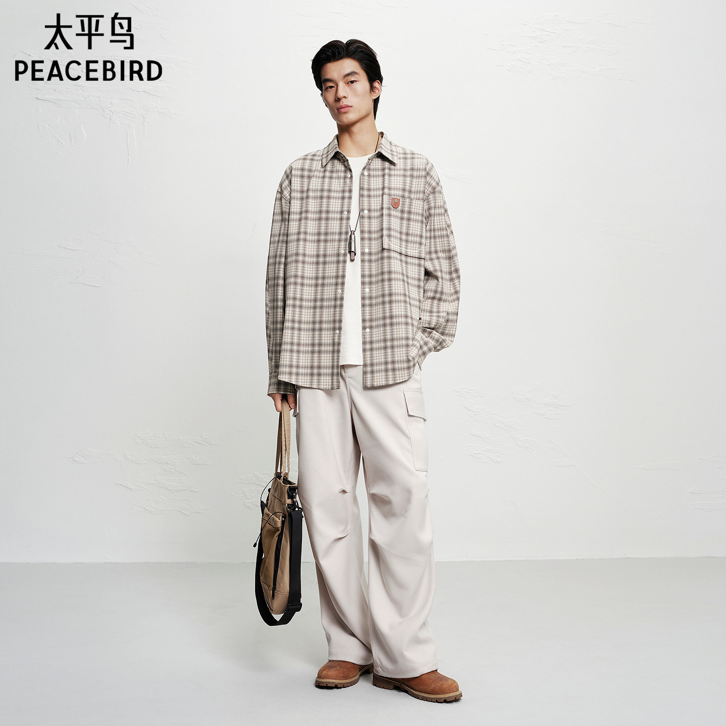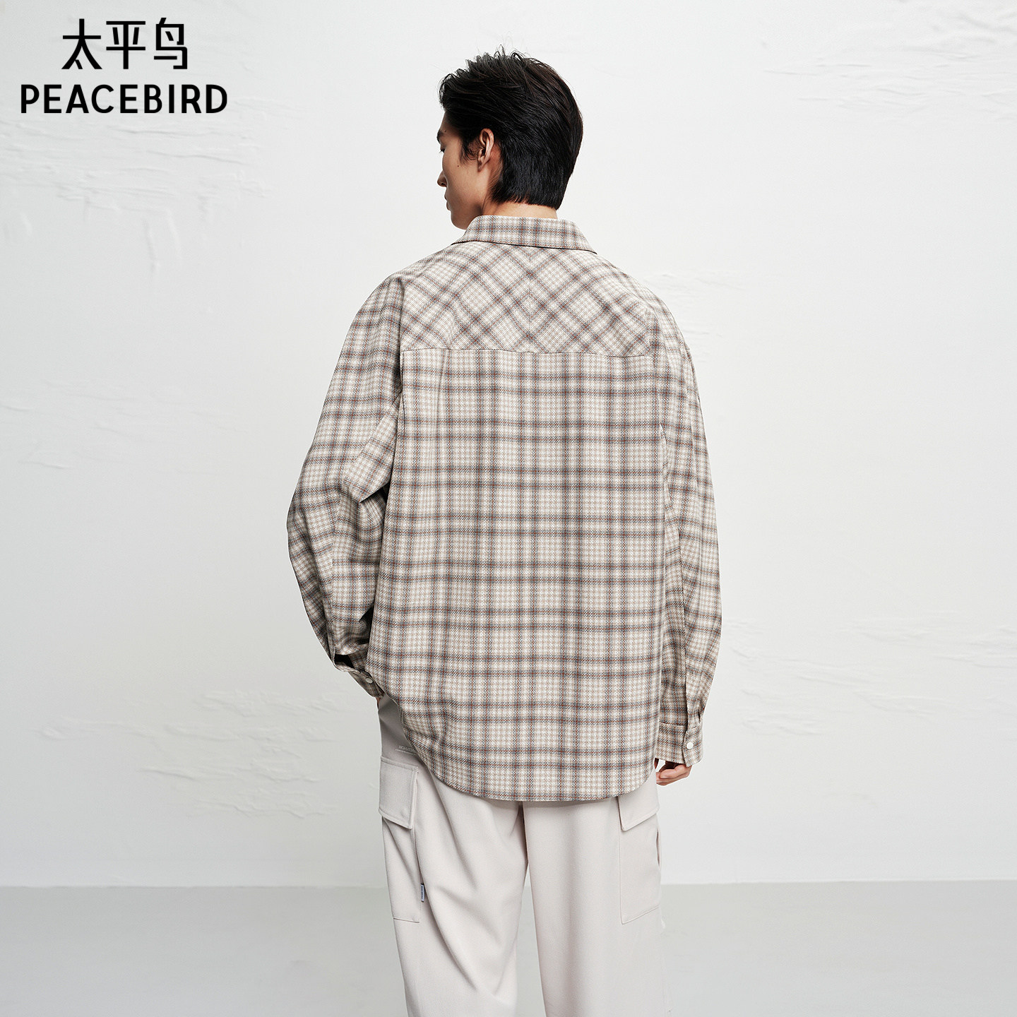 【商场同款】太平鸟男装 潮流美式格纹长袖宽松衬衫男B2CHF4127