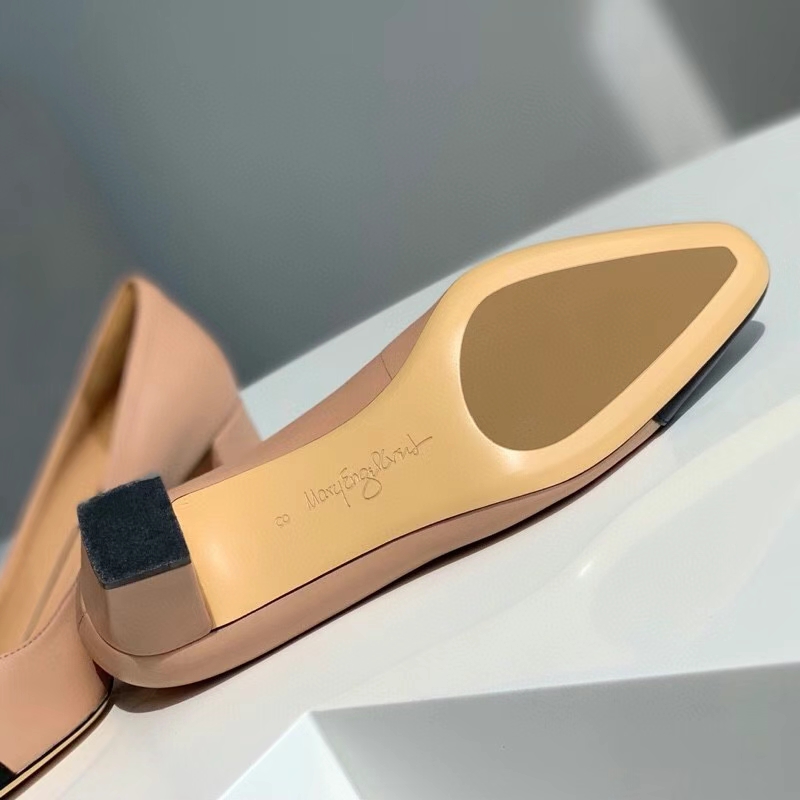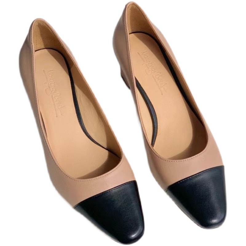 5cm真羊皮粗跟拼色欧美风女单鞋