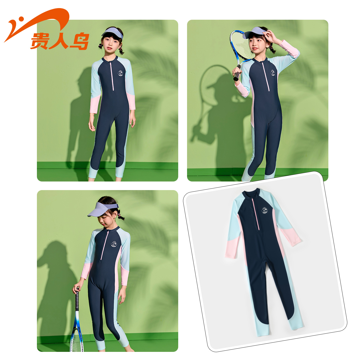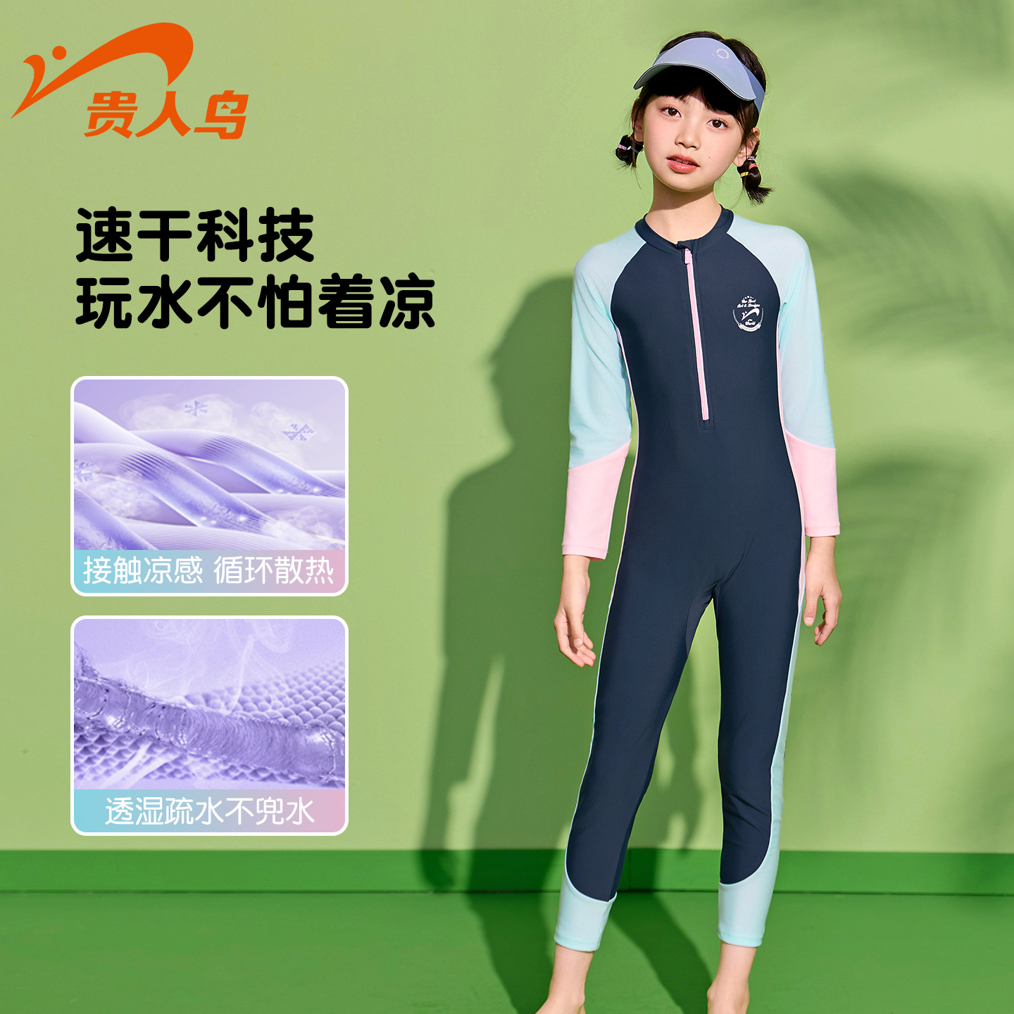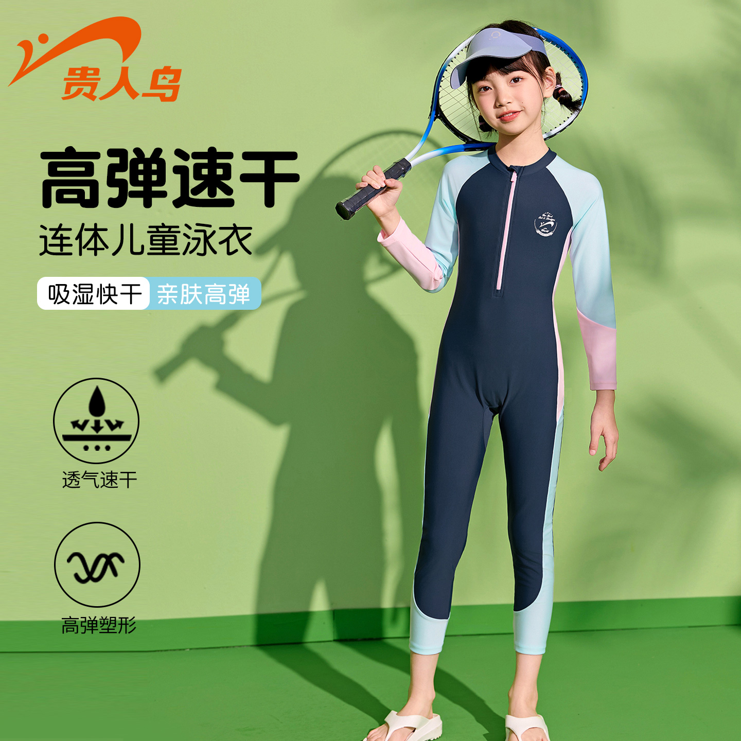 贵人鸟女童泳衣中大童专业训练游泳衣2025新款女孩防晒连体泳装备