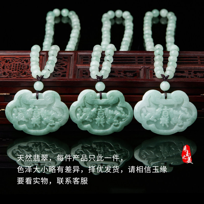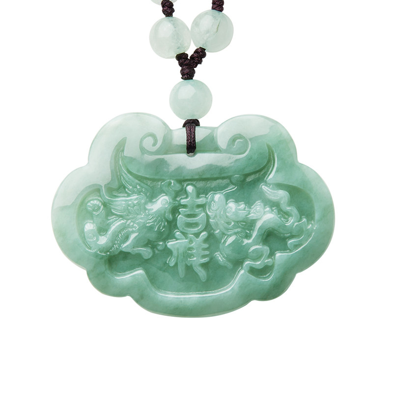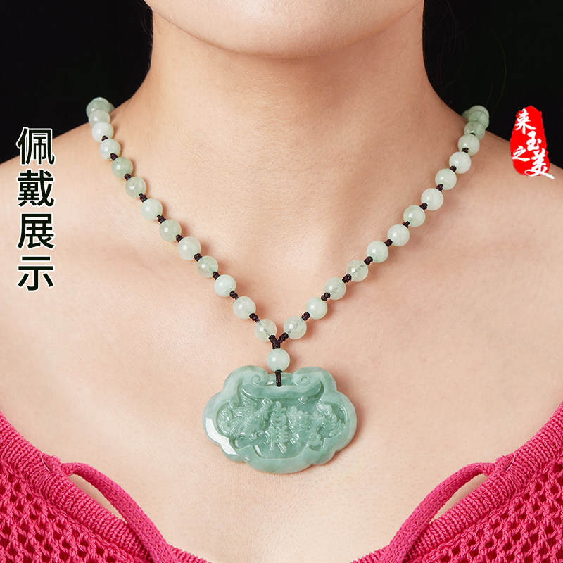 天然缅甸翡翠A货龙凤玉佩玉石项链吊坠珠宝玉牌挂件男女款带证书