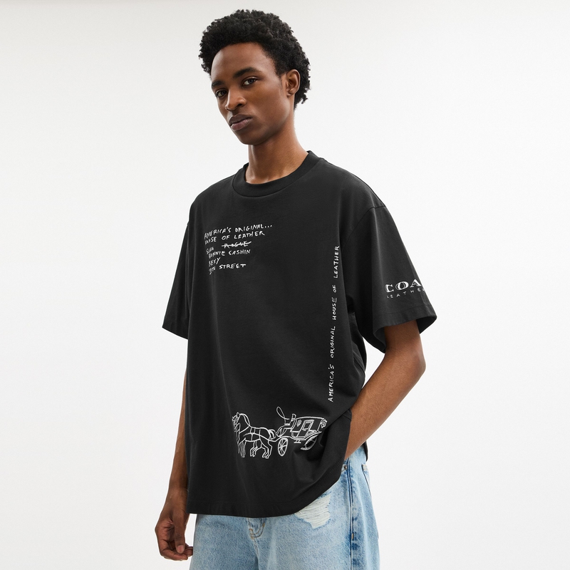 【新品】COACH/蔻驰男女同款棉质SKETCH马车图案休闲T恤短袖上衣