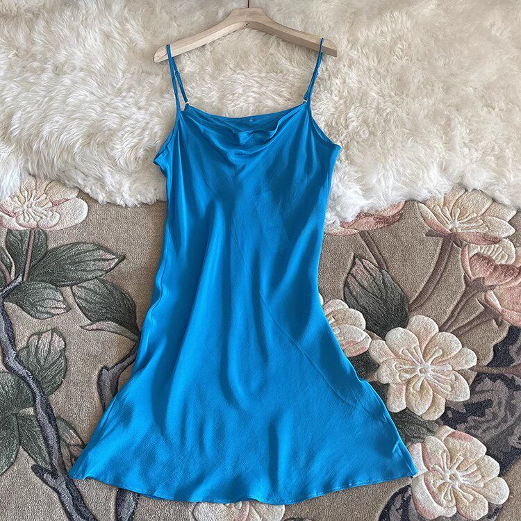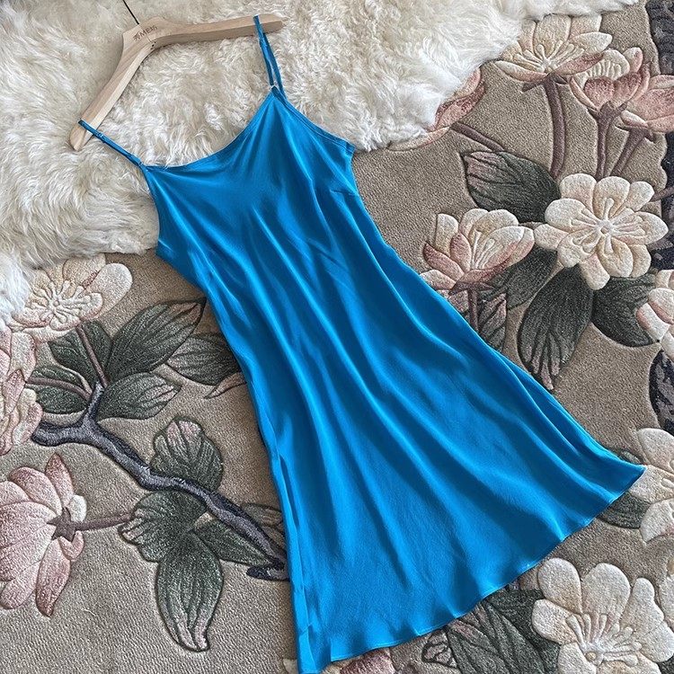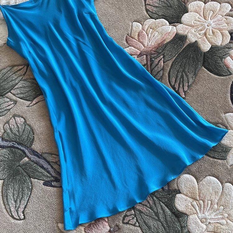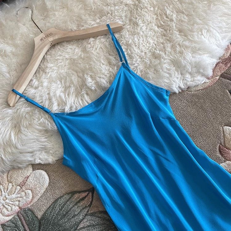 真丝吊带连衣裙细肩带中长款斜裁