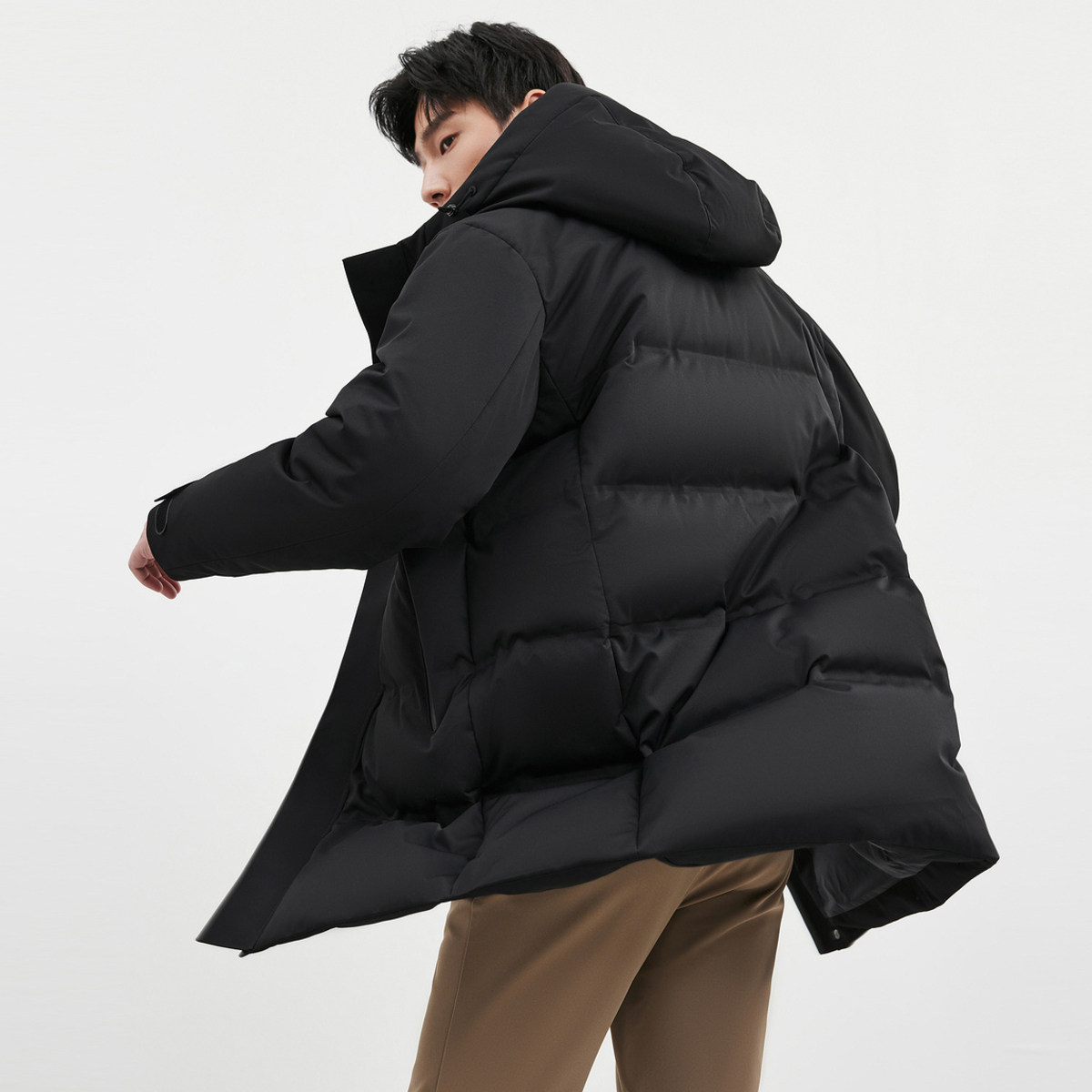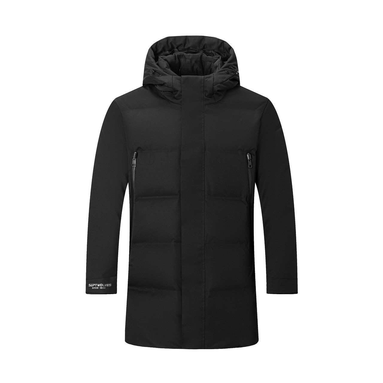 七匹狼中长款连帽羽绒服加厚