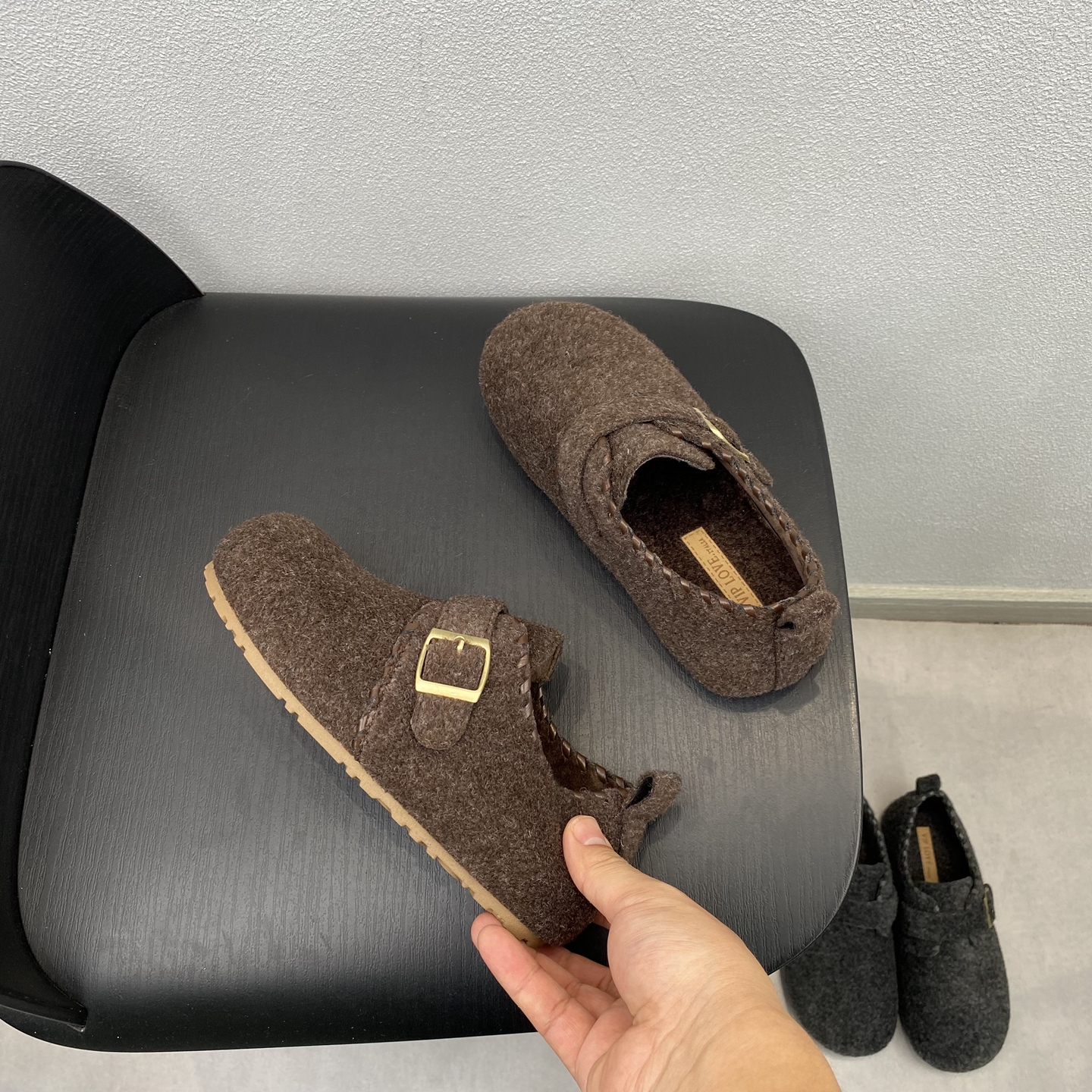 2025新款时尚百搭圆头平底舒适女鞋毛呢皮带扣轻便勃肯鞋加绒棉鞋
