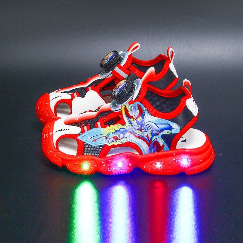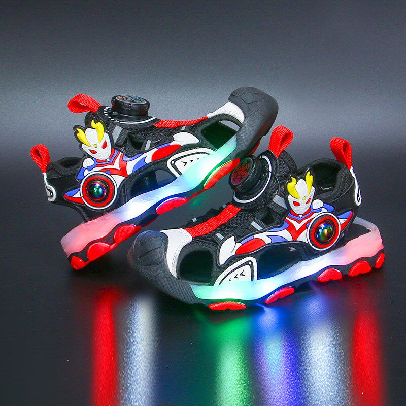 包头凉鞋男孩旋转扣带灯儿童发光凉鞋防滑男童亮灯鞋防踢中小童男