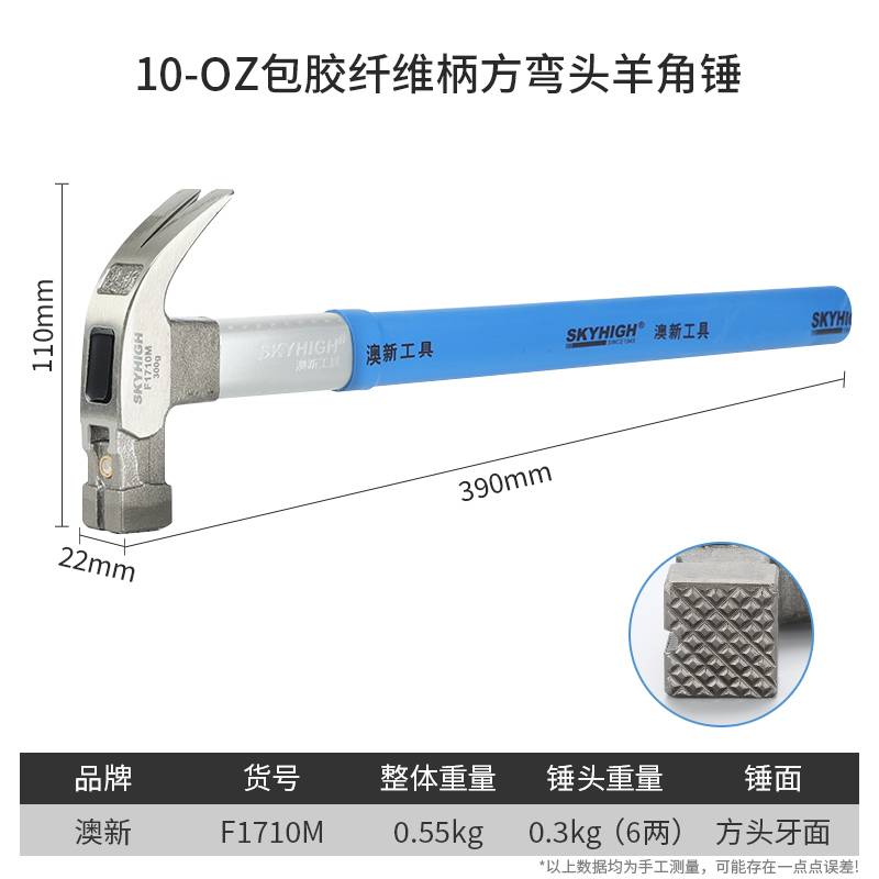 澳新牌木工羊角锤子工具特钢奥新铁锤工地钉锤大全6两8两榔头