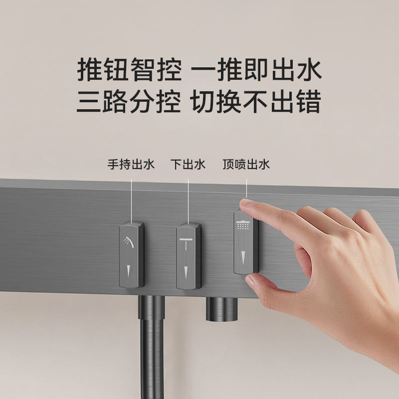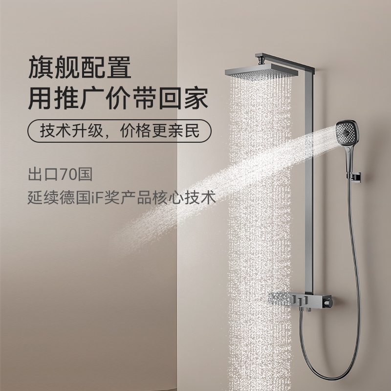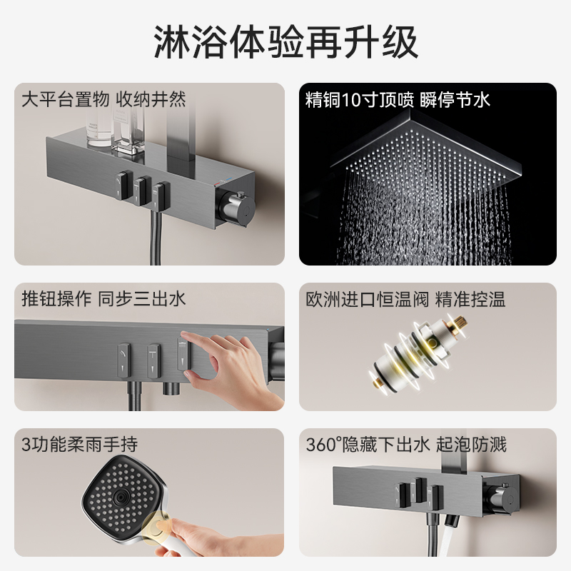 FLOVA丰华卫浴 枪灰色恒温淋浴花洒套装推钮式开关温控瞬停顶喷