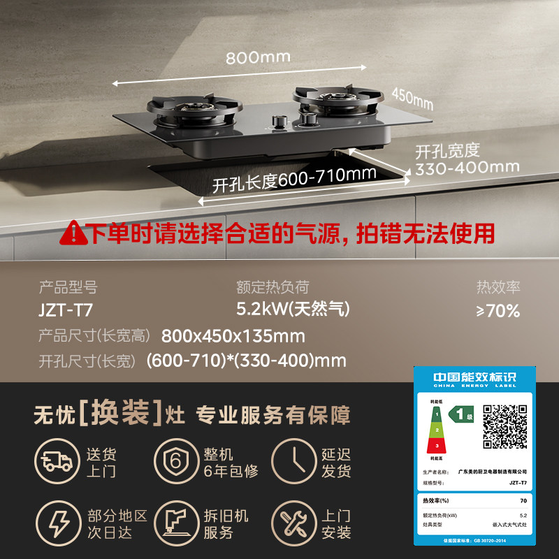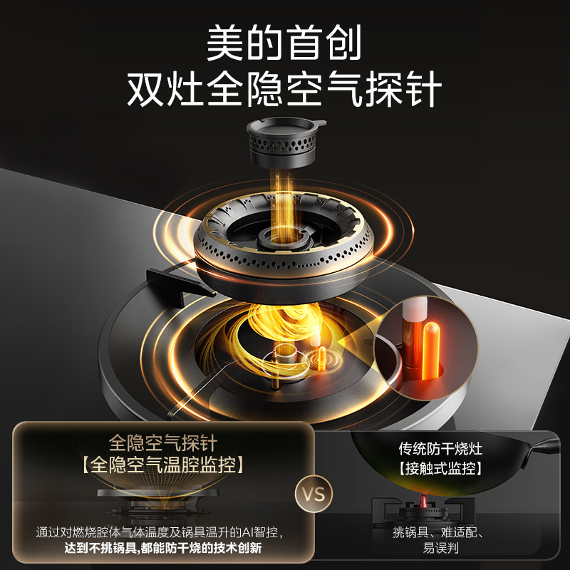 [新品]美的JZT-T7双灶全隐防干烧燃气灶定时家用燃煤天然气灶台具