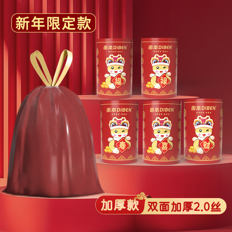 笛本2025新年款蛇年垃圾袋红色家用加大加厚抽绳式一次性塑料袋