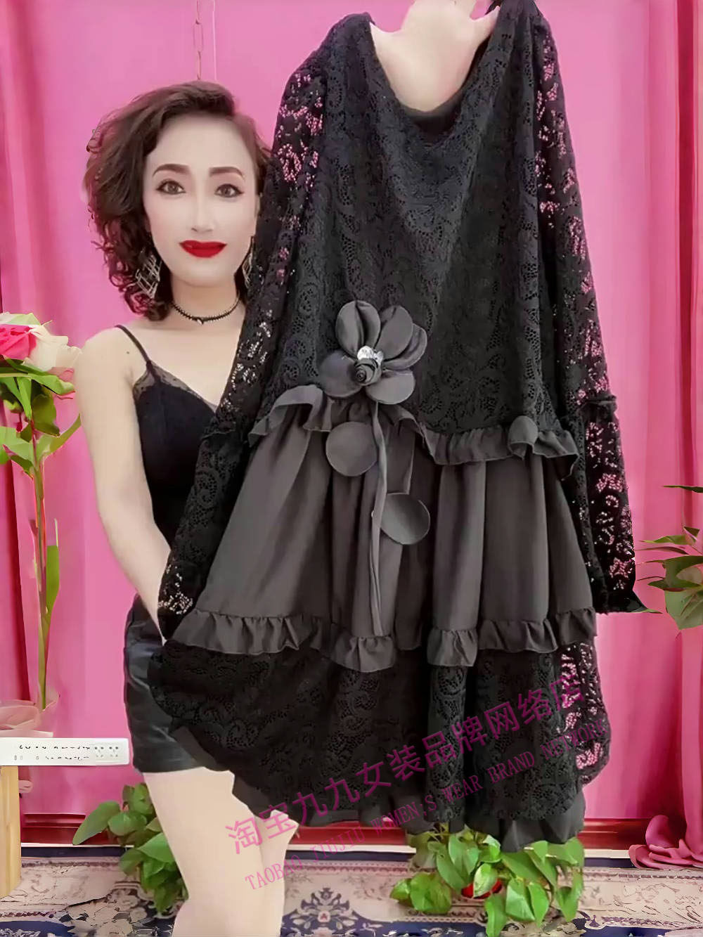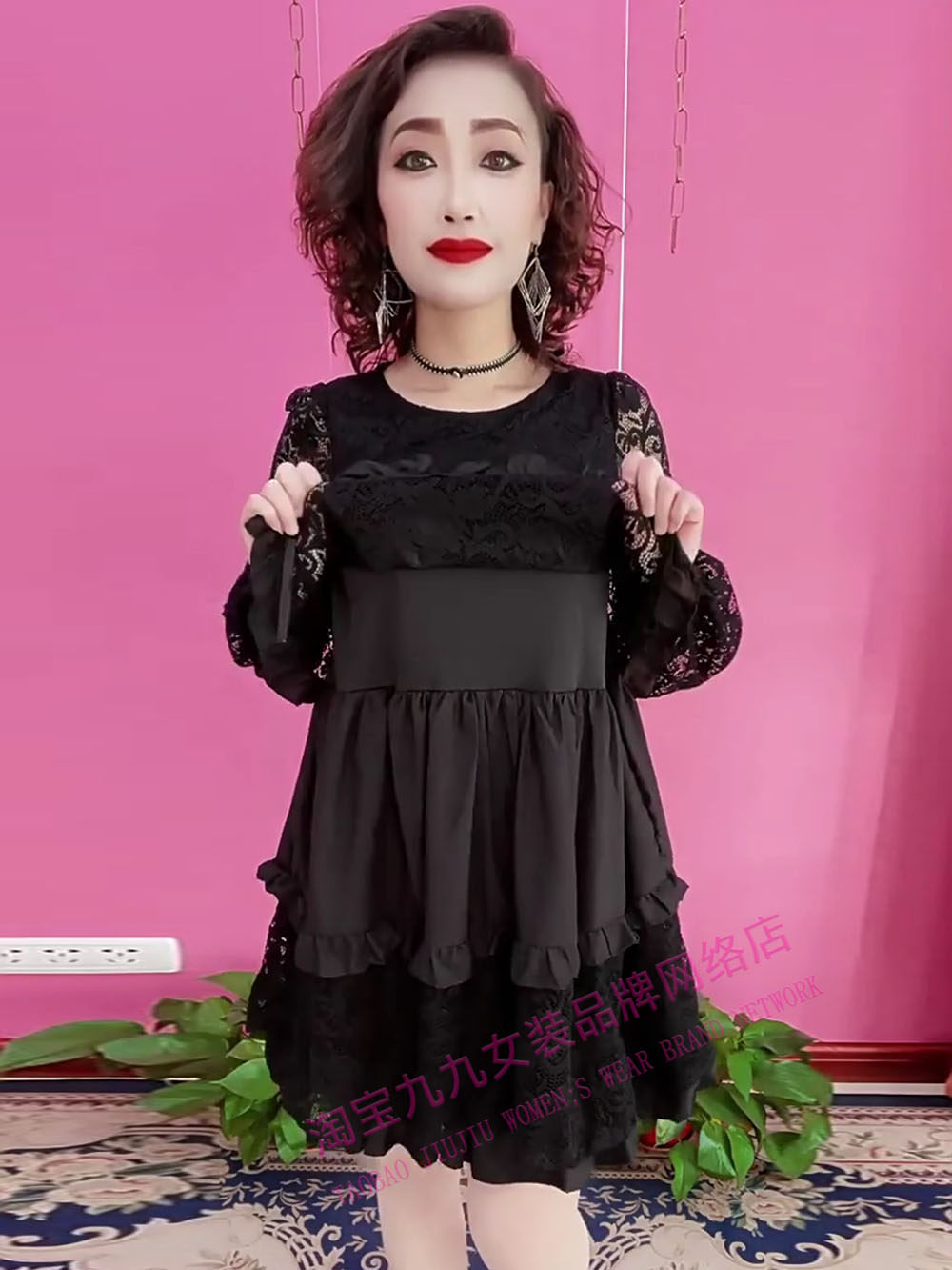 蕾丝拼接连衣裙女士春季新款时尚洋气宽松遮肚显瘦中长款a字裙