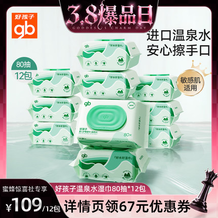 【38爆品日】gb好孩子婴幼儿湿巾湿纸巾80抽手口用湿巾
