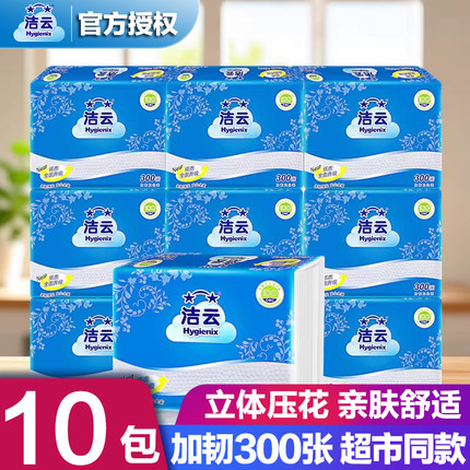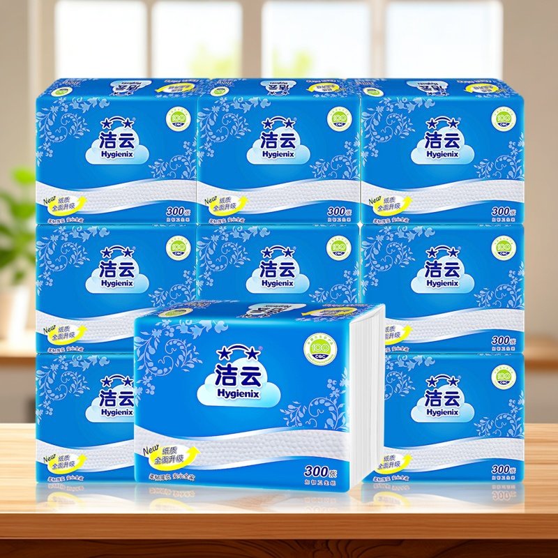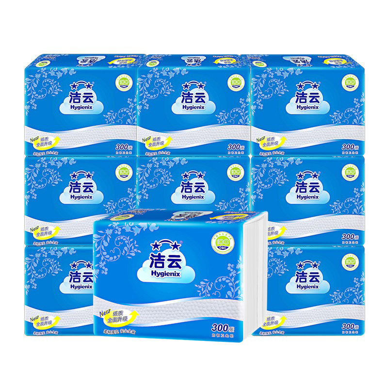洁云平板卫生纸草纸加韧压花厕纸木浆手纸300张抽取式方包纸家用