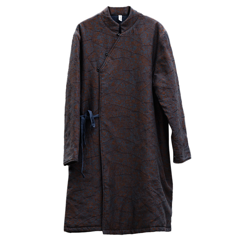 知笔墨冬季文艺复古中国风肌理感袍子中长款季候夹棉斜襟棉服女