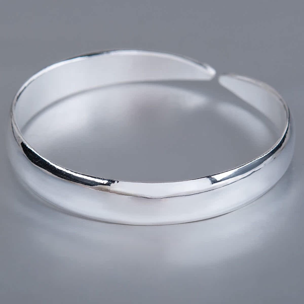 传统999纯银手镯子时尚光面版简约足银手环99银饰素银饰品男女款