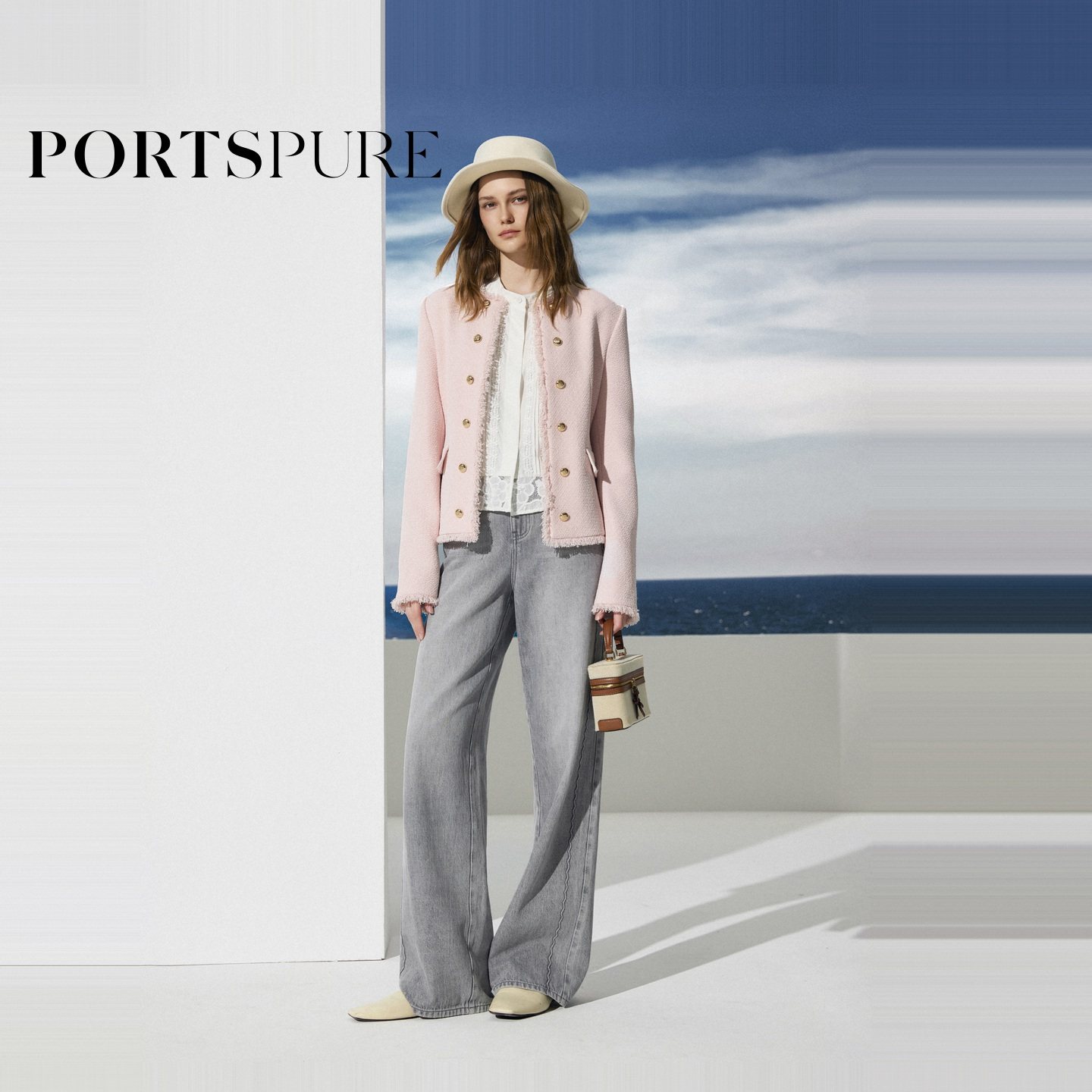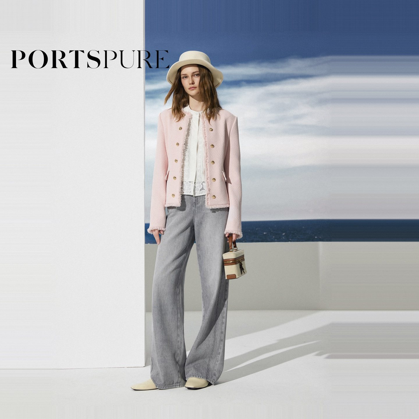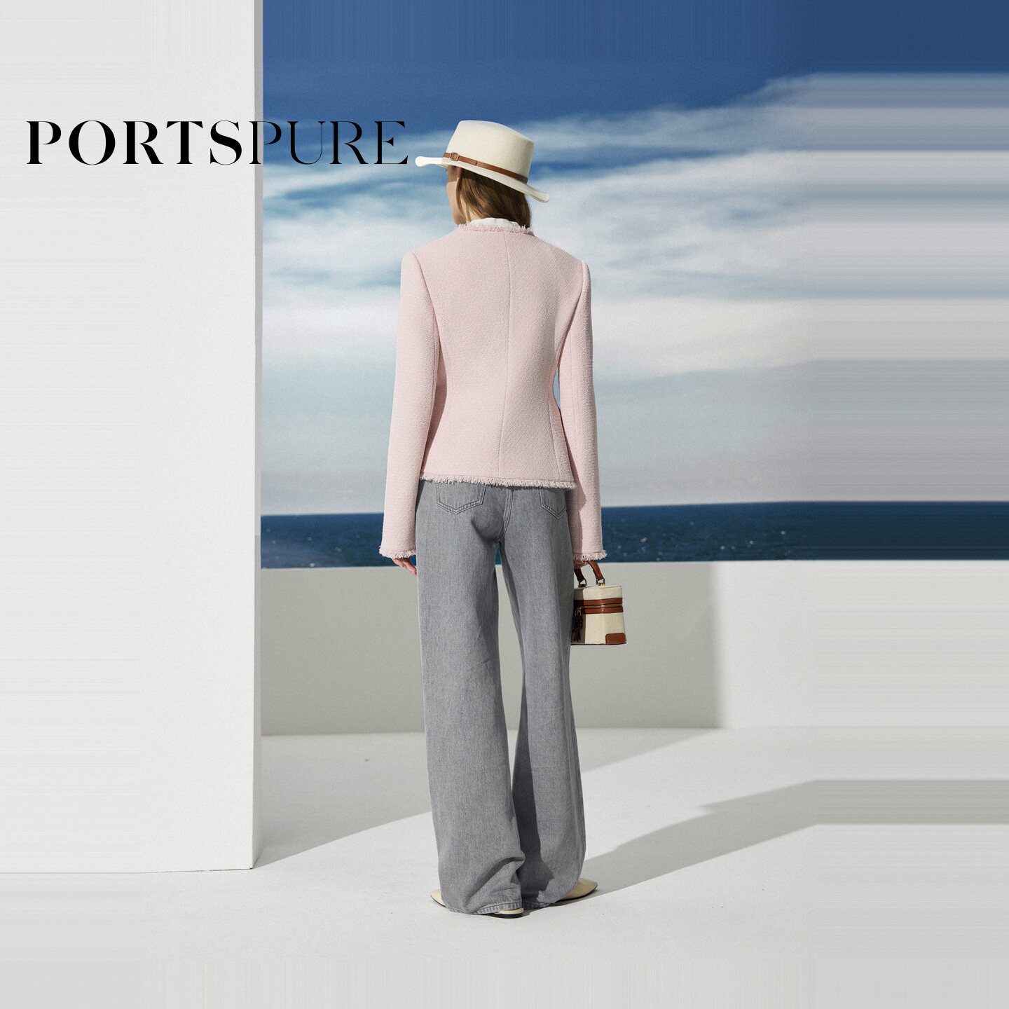 宝姿PORTSPURE女装2026早春新品饰金扣毛边修身香风短外套