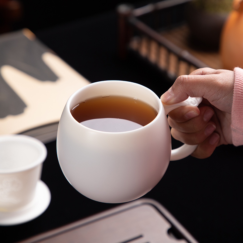 水杯马克杯陶瓷带盖大容量定制家用办公杯茶水分离德化白瓷羊脂玉
