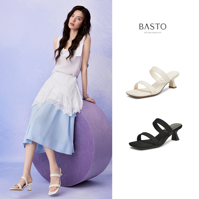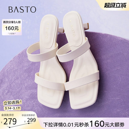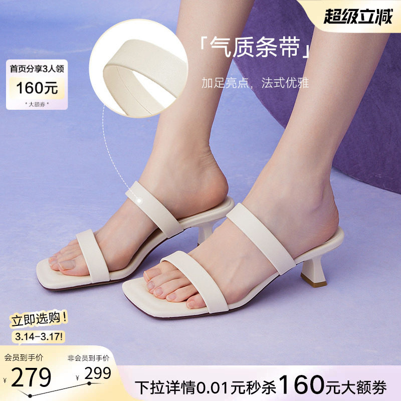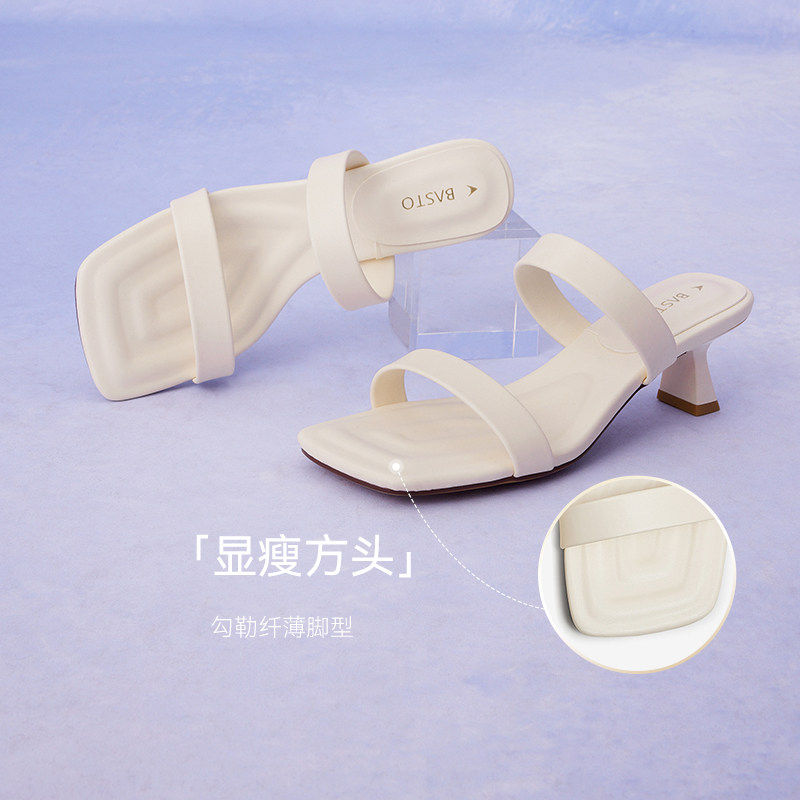 百思图夏季商场新款时尚通勤一字拖细高跟外穿女拖鞋B5297BT5