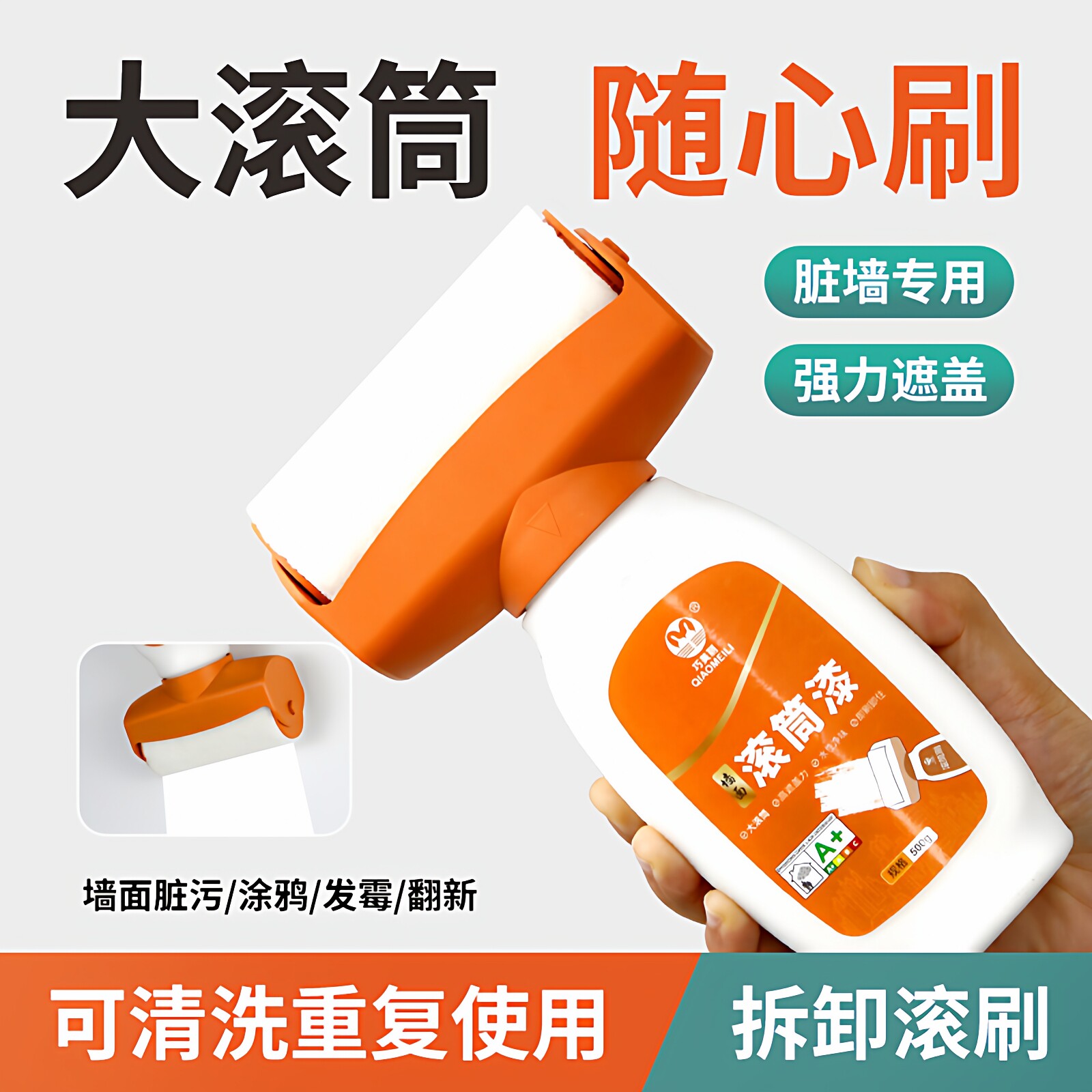 白墙面滚筒漆墙壁修复乳胶刷墙补墙修补自刷膏去污神器自喷色涂料