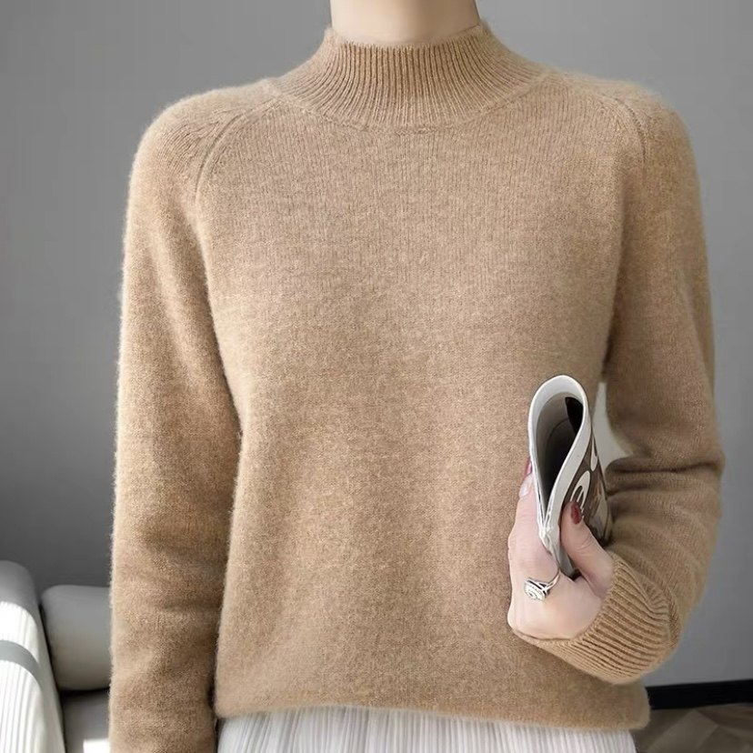鄂尔多斯市绵羊毛衫女一线成衣半高领宽松内搭打底衫针织秋冬款
