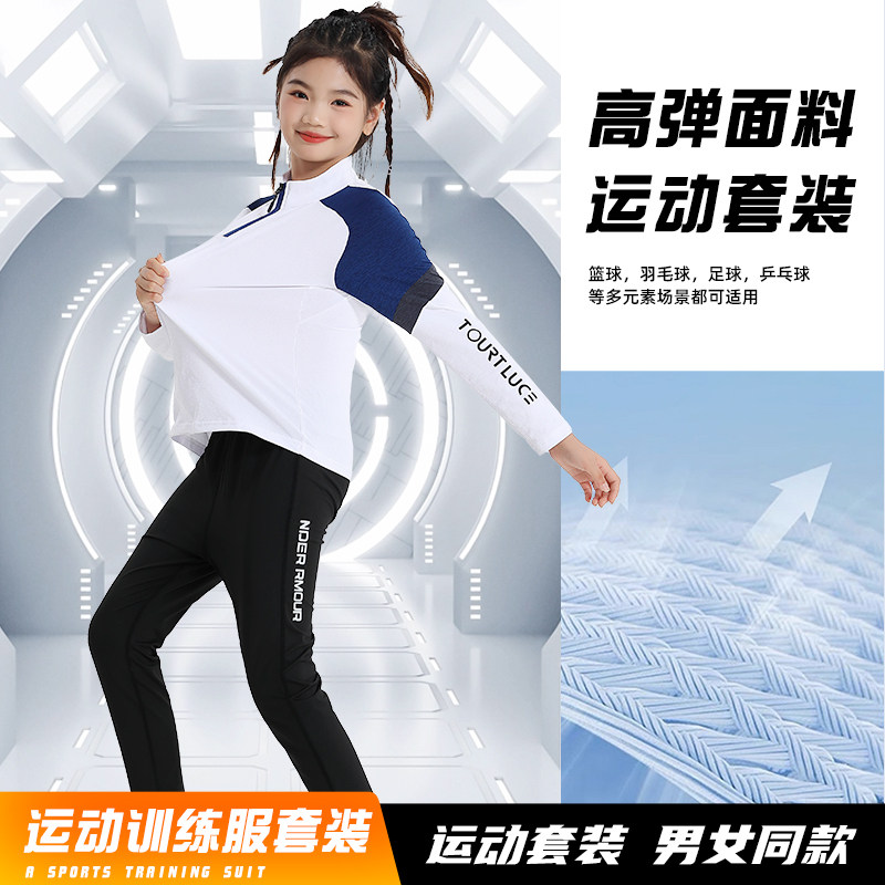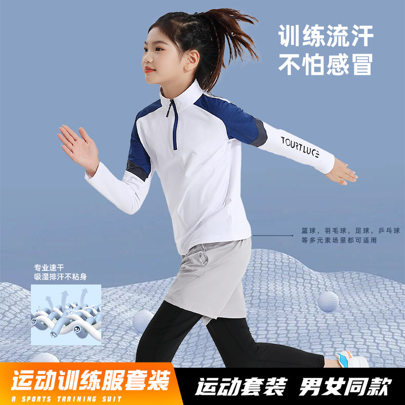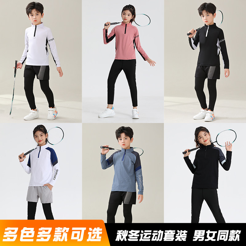 儿童秋冬长袖羽毛球服套装男女童外套长裤快干跑步运动紧身训练服