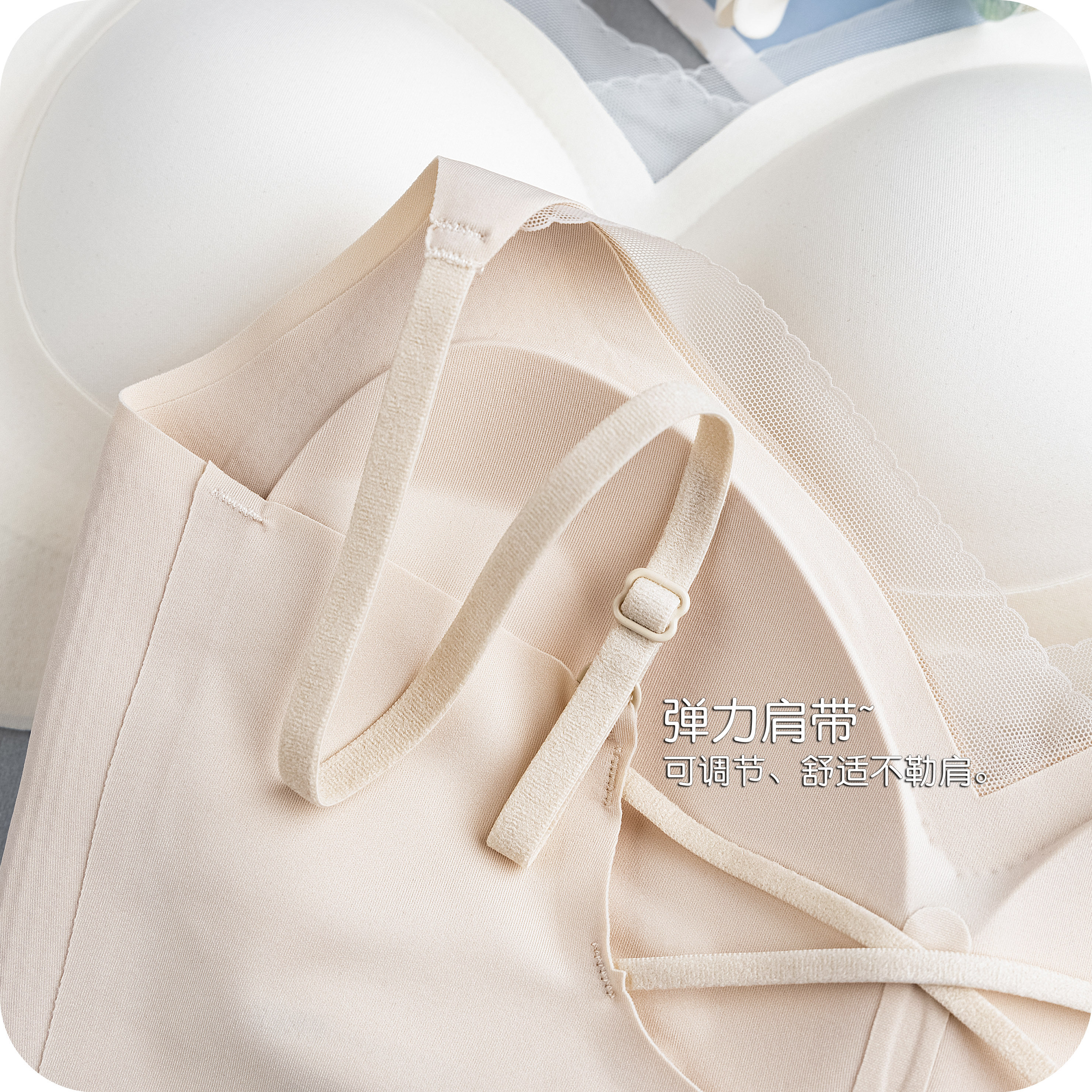 小胸聚拢显大内衣秋粉底液文胸提拉收副乳无痕防下垂抹胸镂空美背
