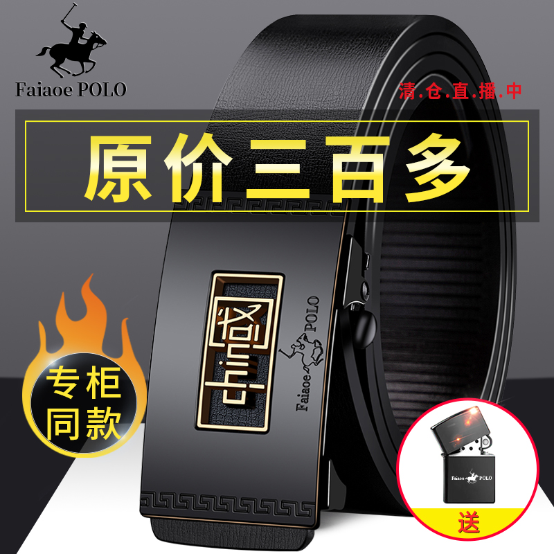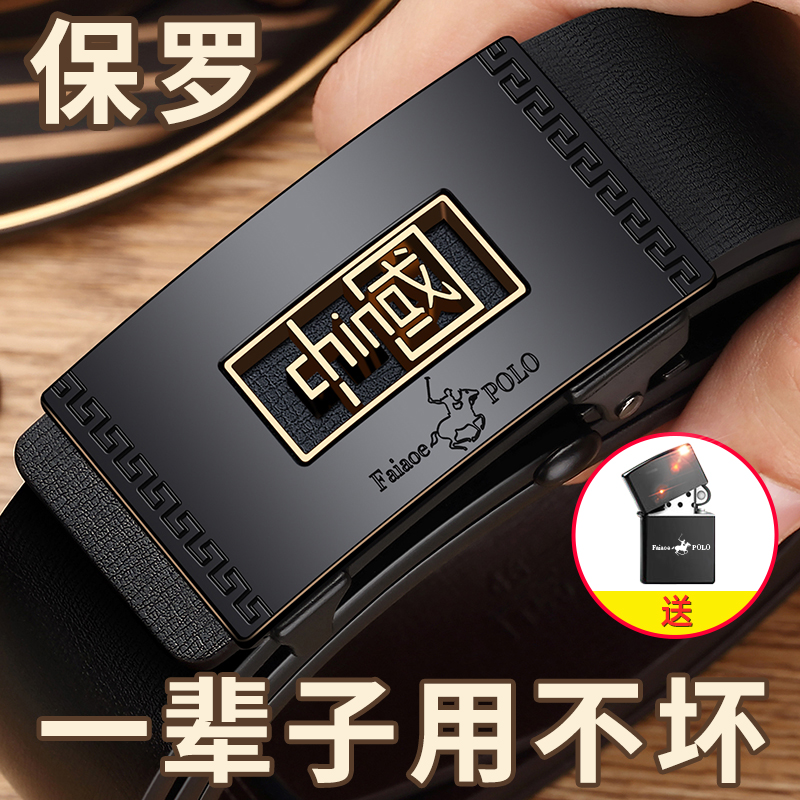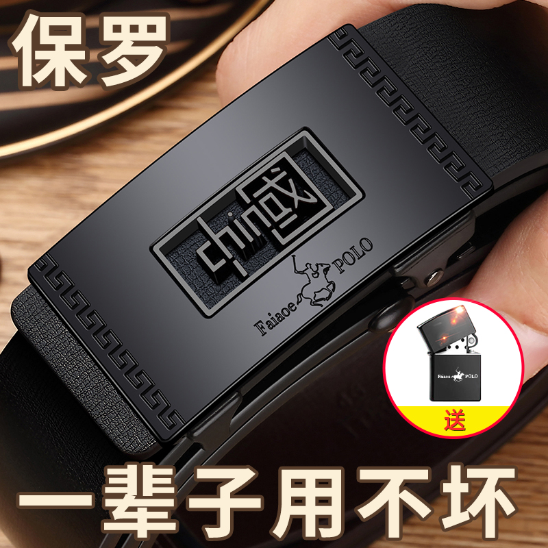 保罗POLO男士皮带自动扣裤带裤腰带青年中年休闲商务百搭真皮牛皮