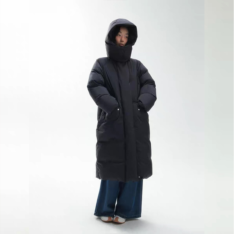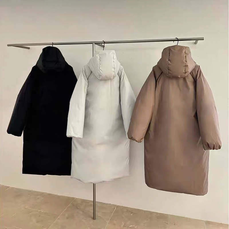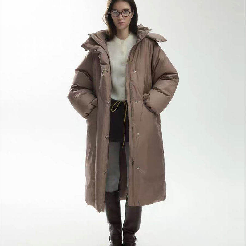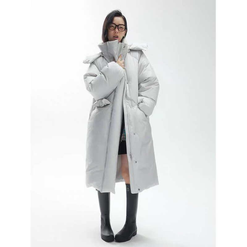 hello新款羽绒服女复古可拆连帽长款羽绒服宽松过膝面包服潮V7630