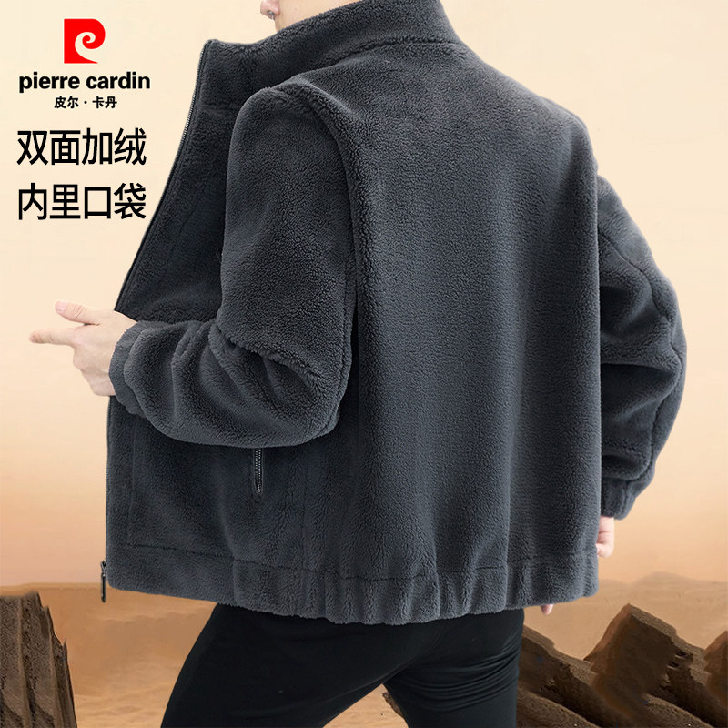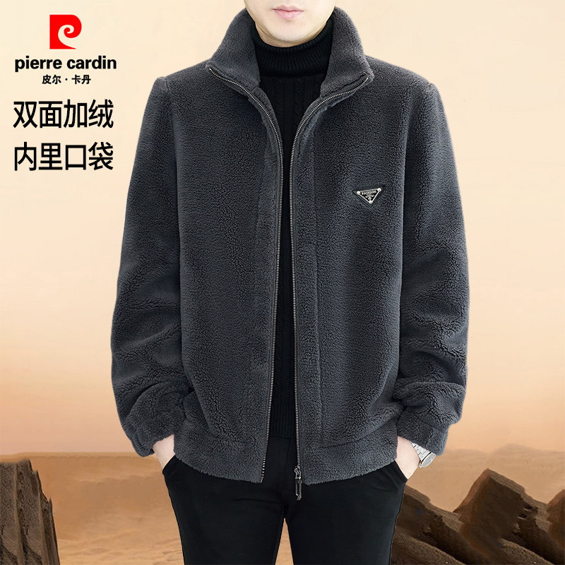 【双面绒】皮尔卡丹秋冬新款夹克男士皮毛一体休闲高档爸爸装外套