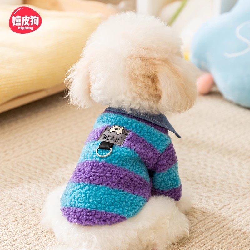 嬉皮狗秋冬款条纹衬衫领两脚绒衣