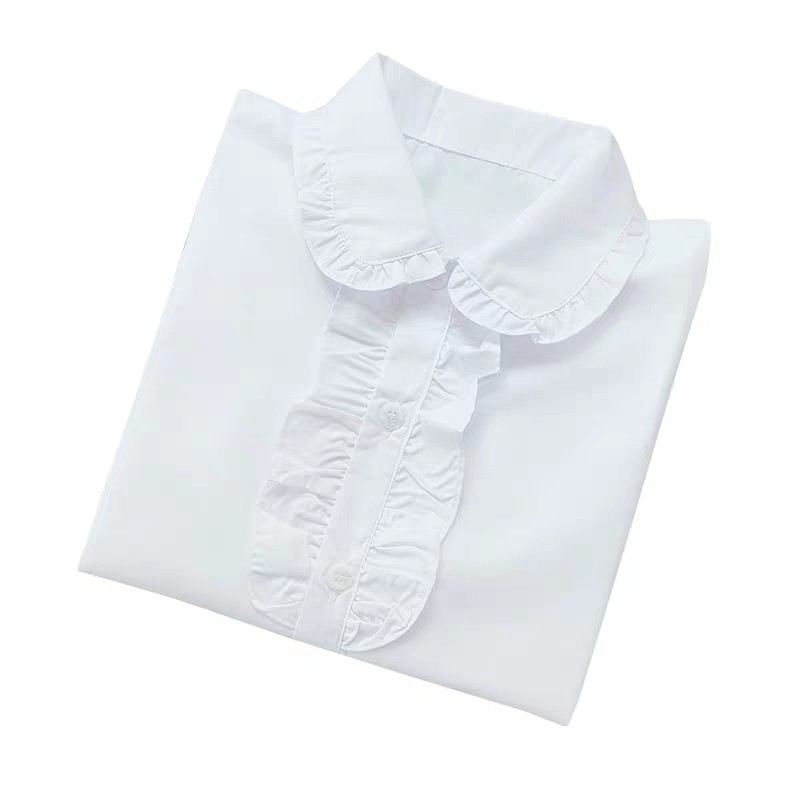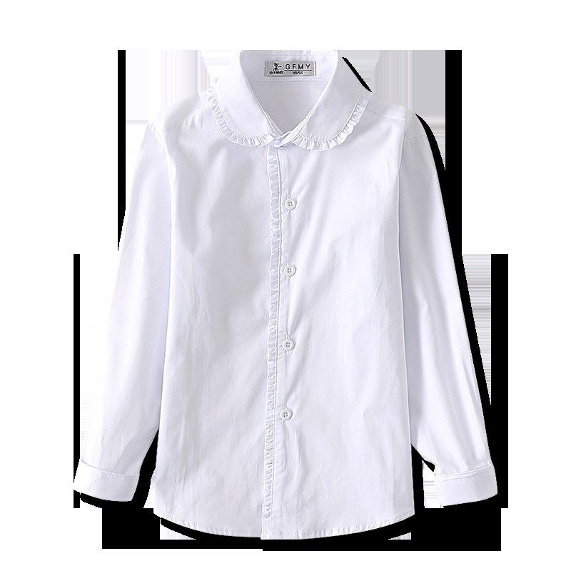 女童纯棉白衬衫加绒加厚秋冬款小学生校服儿童白色长袖衬衣中大童