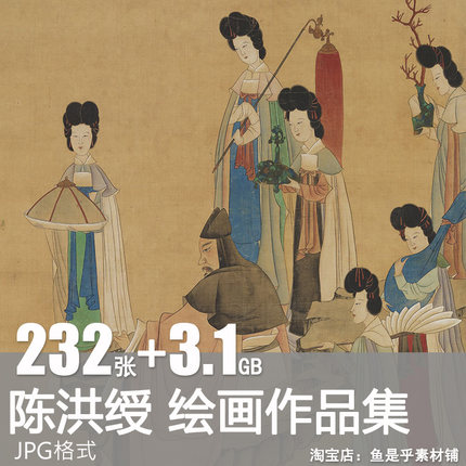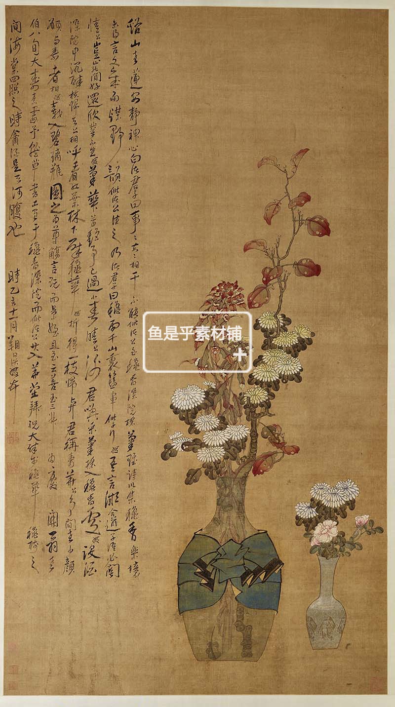 明 陈洪绶绘画作品合集 花鸟册荷花鸳鸯图蕉林酌酒图高清素材图片