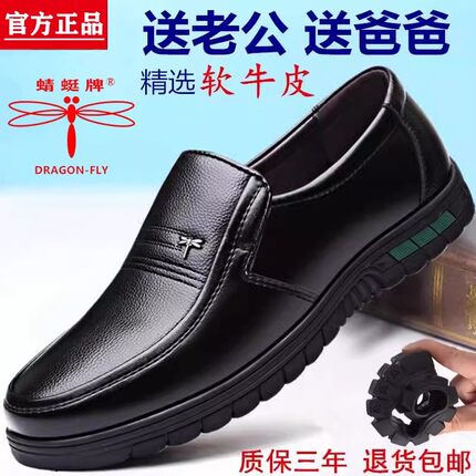 正品蜻蜓牌皮鞋男2026新款真皮男士软底春季透气中老年防滑爸爸鞋