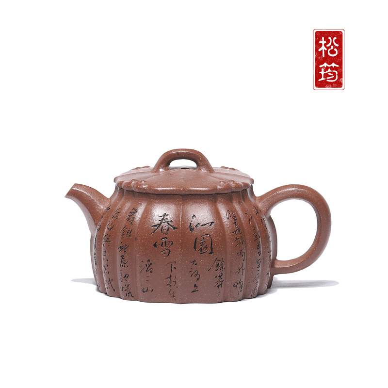 原矿降坡纯手工刻绘筋纹合菱160ML宜兴紫砂壶中式功夫泡茶壶茶具
