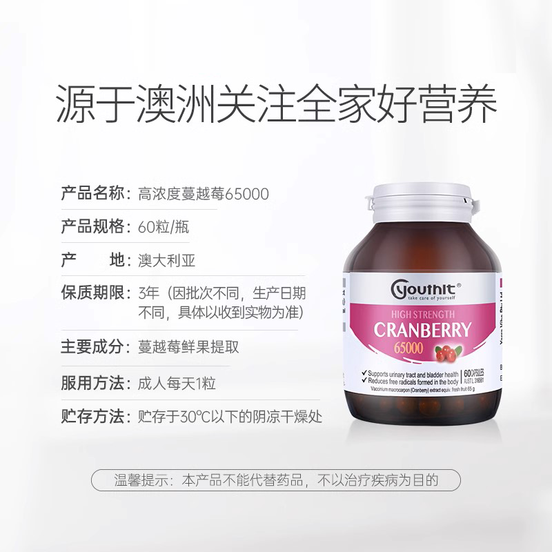 【自营】澳洲Youthit优思益高浓度蔓越莓胶囊私处保养泌尿健康