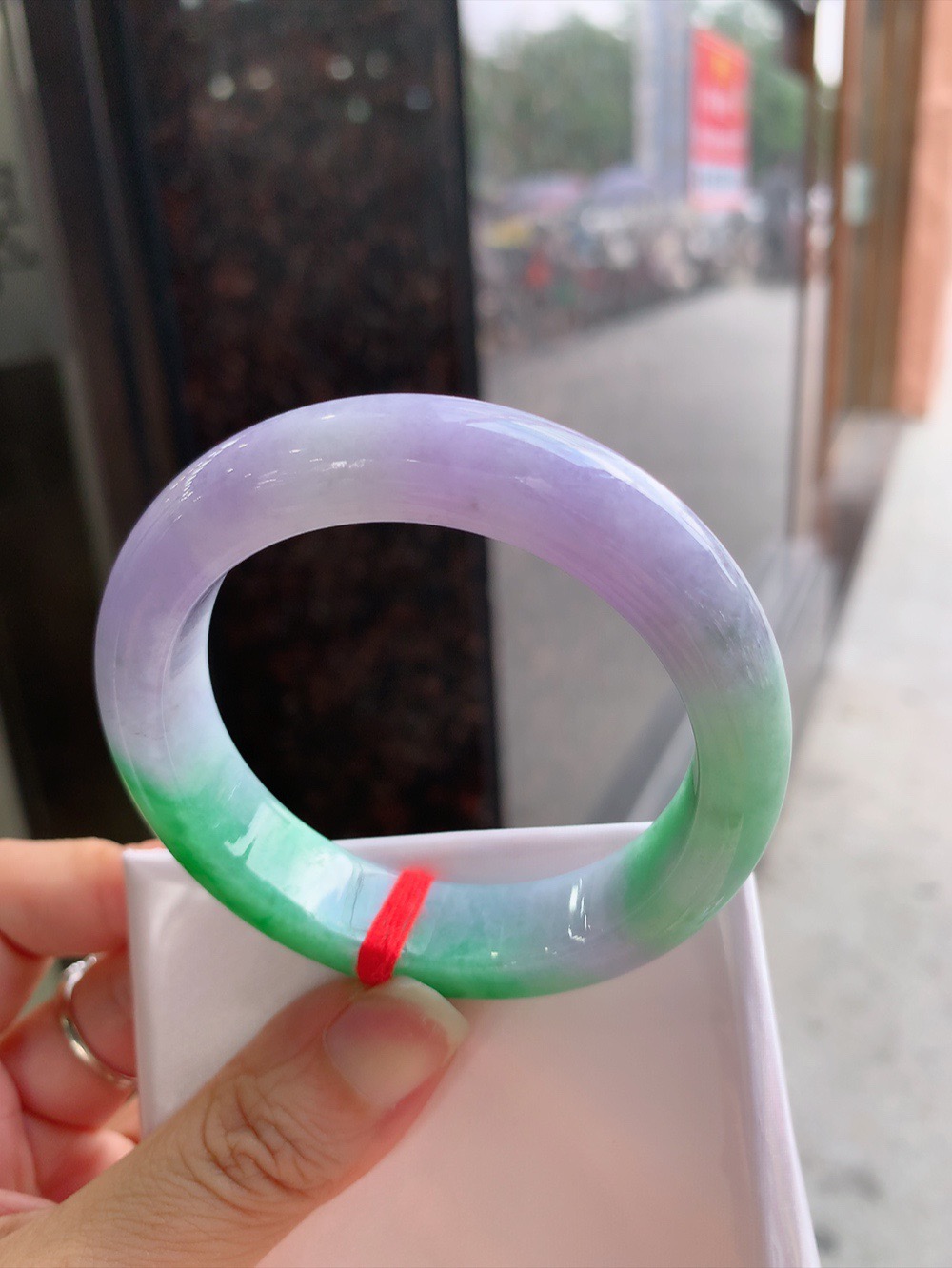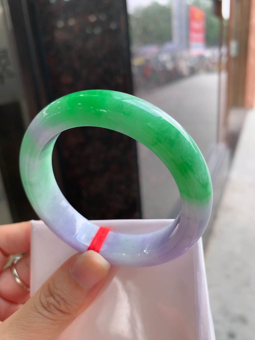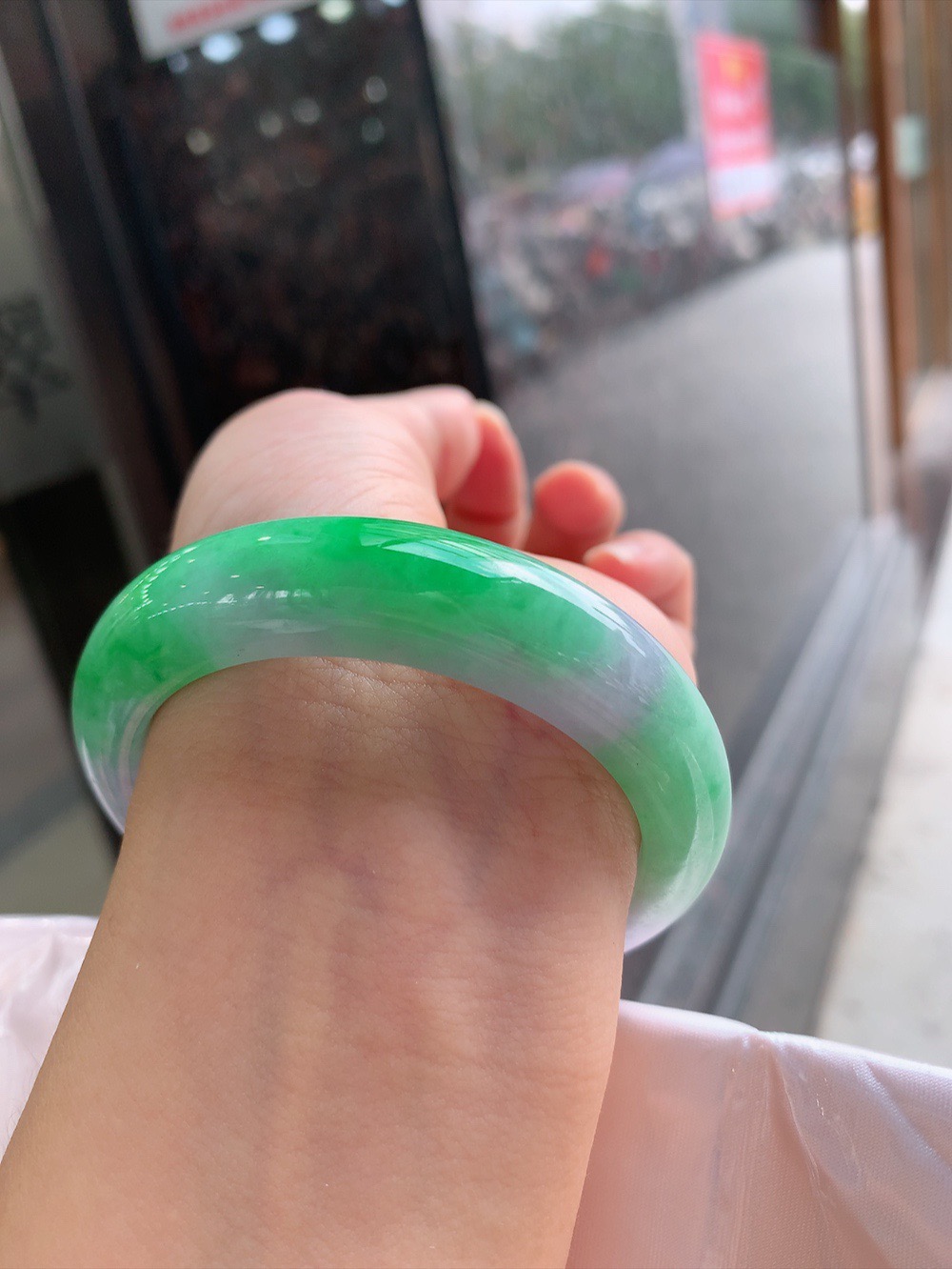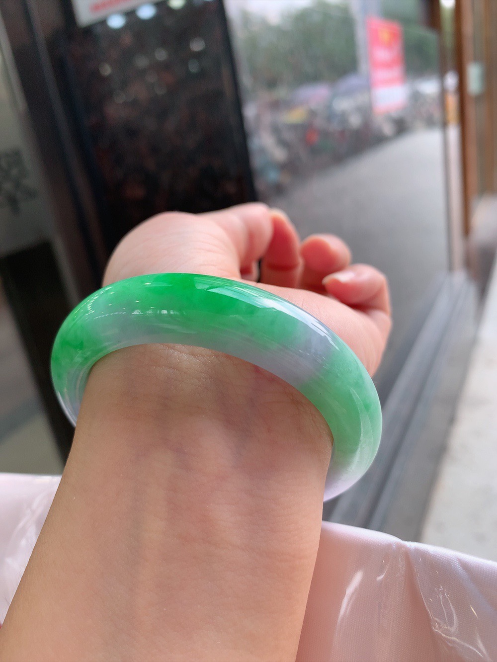 53圈纯天然缅甸A货翡翠冰种春彩正圈手镯冰种阳绿玉石手镯送妈妈