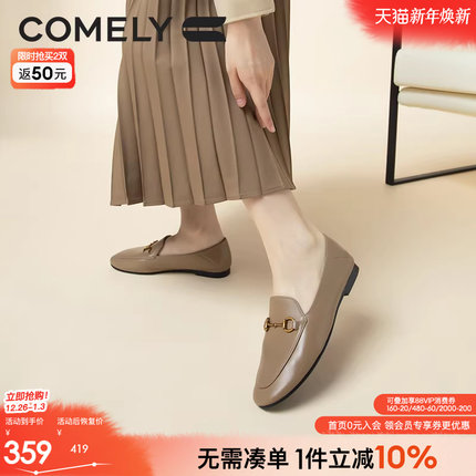 康莉棕色小皮鞋女春秋羊皮平底乐福鞋女百搭单鞋英伦风女鞋3A016D