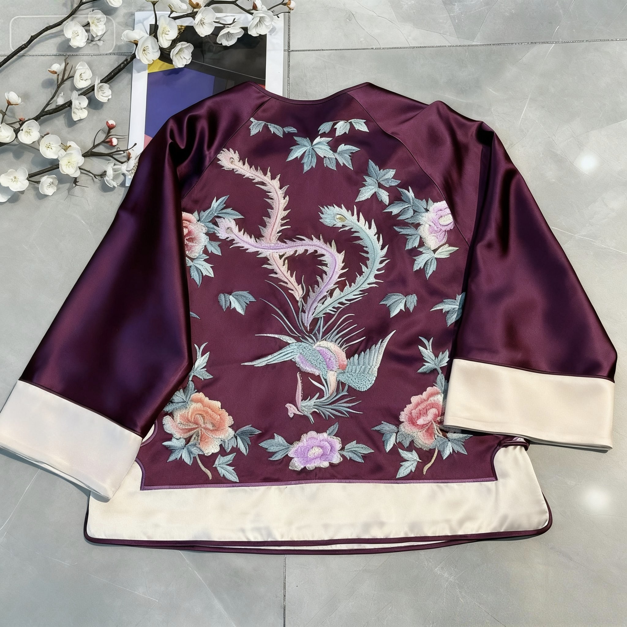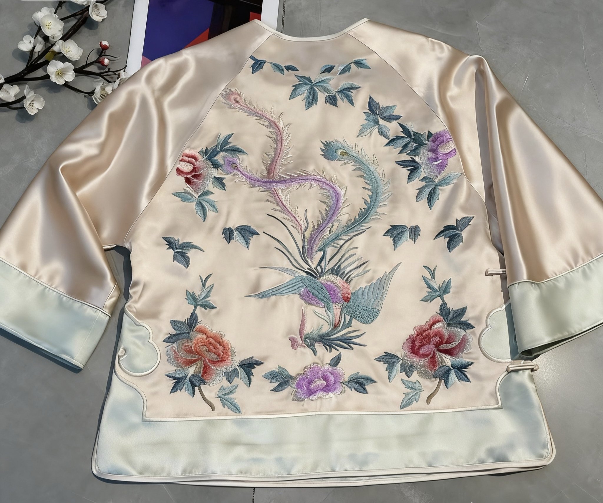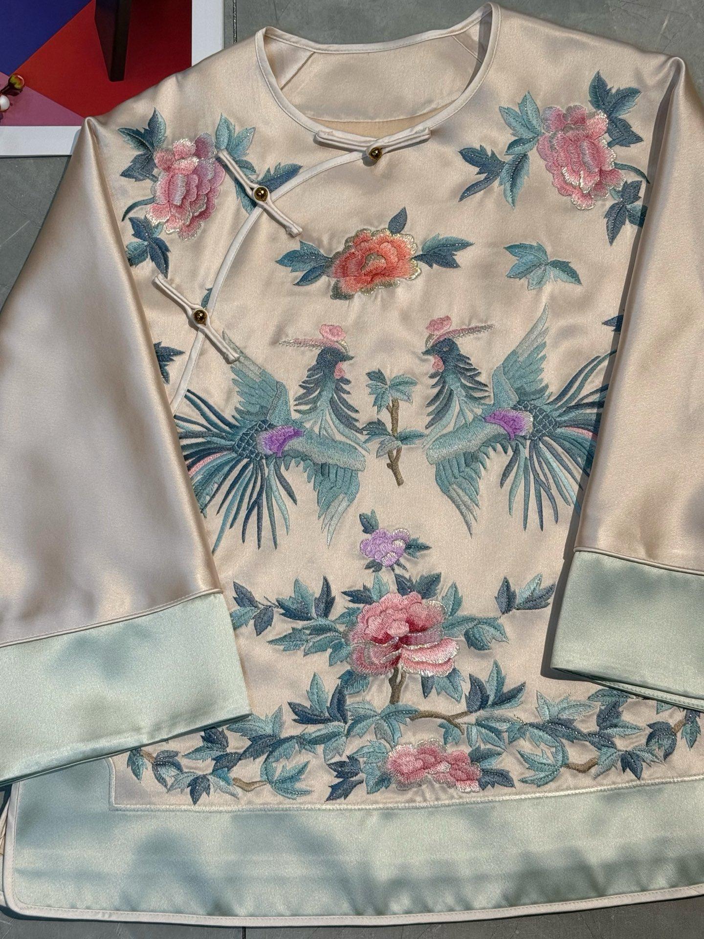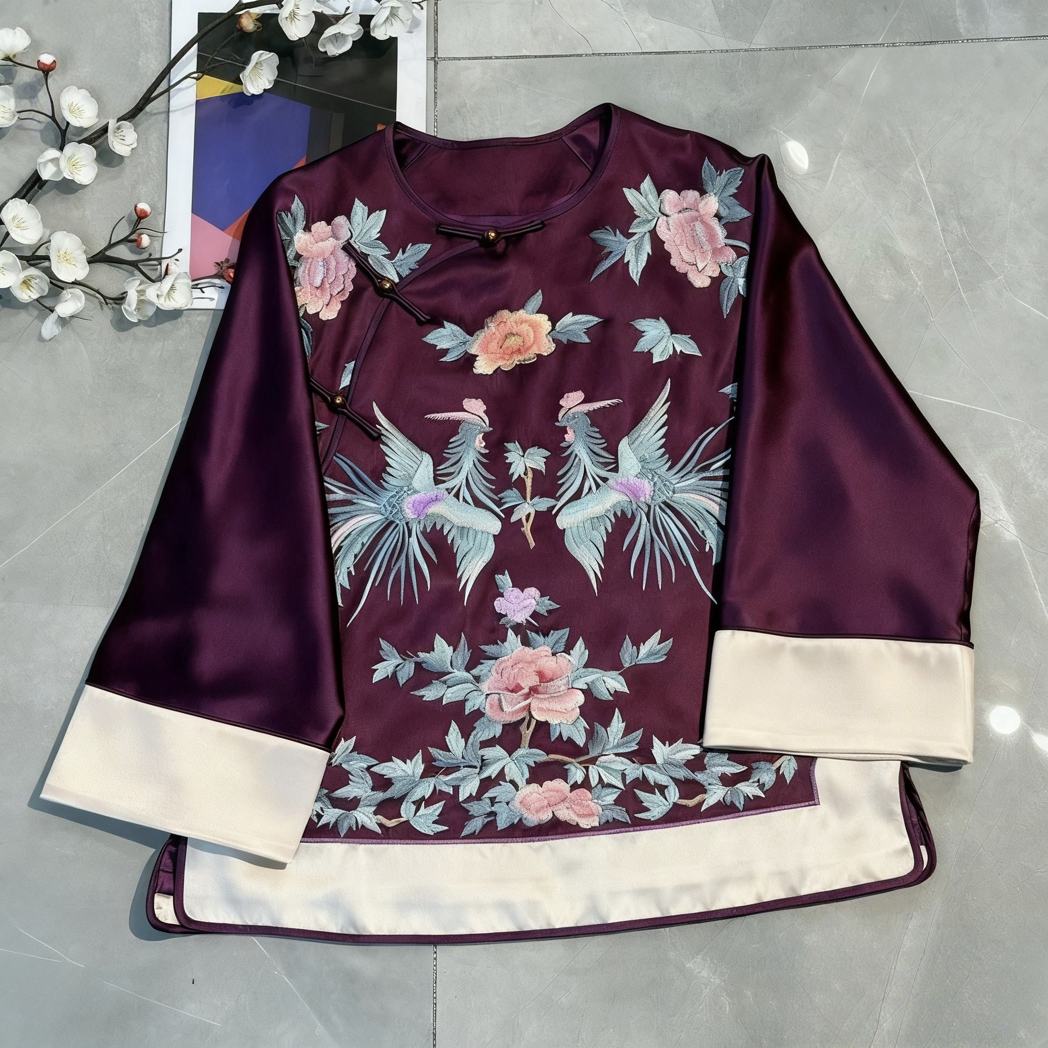复古国风凤凰牡丹刺绣改良唐装上衣2025秋冬季国潮百搭醋酸外套女