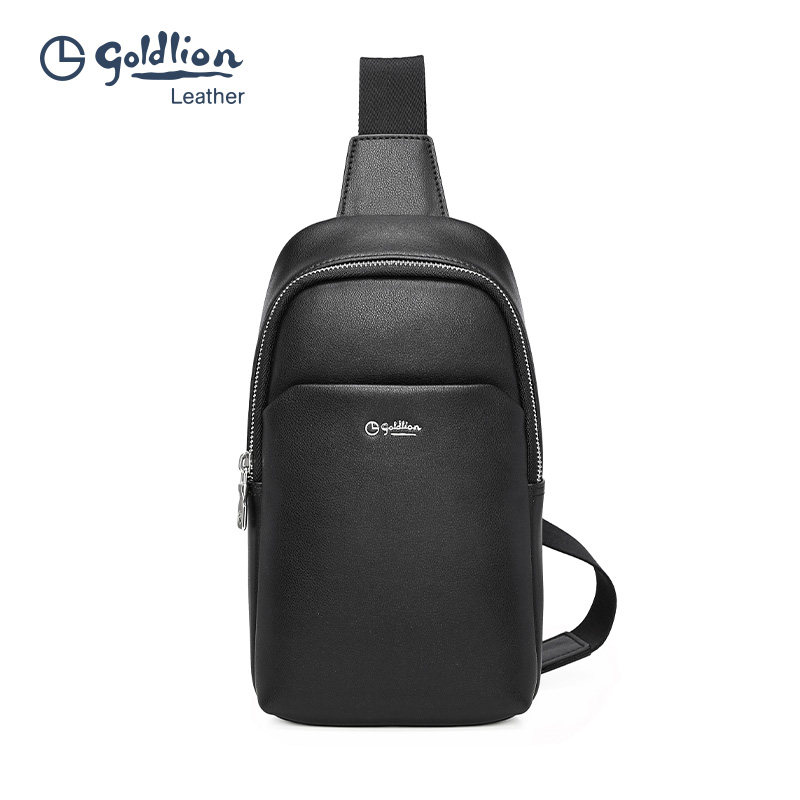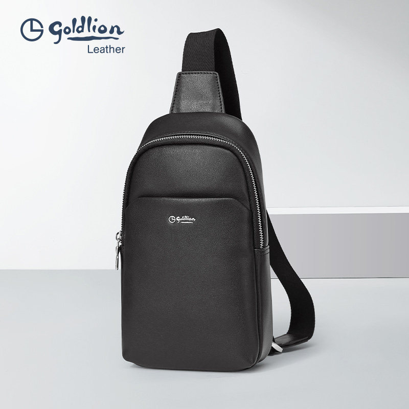金利来男士胸包牛皮单肩包简约时尚大容量胸包青年休闲斜挎包男包